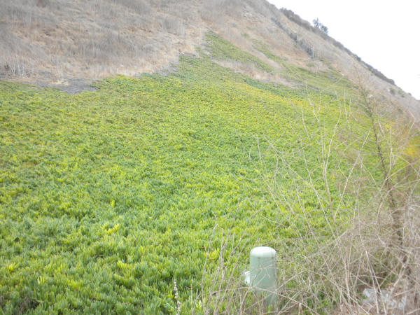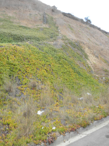 Ex.s of invasive iceplant wherever orig. grade/slopes are disturbed