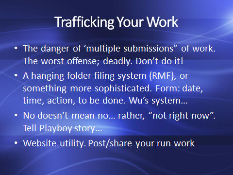 ![]() Being systematically inclined can make the difference between frustration and success/Nirvana... Getting your work in print and on the Net, possibly TV. DO read over CAREFULLY the Instructions to Submitters for any agency, outlet you're trying to sell to, and just as carefully craft your cover letter/s... ahead of time if enquiring re making submissions, or sending out along with unsolicited submissions or no. Make the editor's' jobs easy by providing a mix of images, suggested captions... When, where in doubt, keep sending out your work and making new. Wonder why it's not selling? Ask the folks you're sending it to. They know and will tell you if requested. ![]() Multiple submissions: the deadliest mistake. You may want to adopt pseudonyms if you're going to try and sell to competing media. I use "history forms" for all my work and markets... and keep track of all out-bound and in-process work, including pending payments, diligently. It's not just being a proficient and productive photographer (and writer) that being successful in the field takes, but being forthright in presenting ones work, and "doing the paperwork", making sure you get paid. After your work has run/sold, unless exclusively, do share it with others... on your site. ![]() I include this image as an example of something you might not consider of use... dead/dried fish at a foreign market. This image has sold a few times. ![]() Friend Rob Bray of House of Fins, Greenwich, CT, squatting like an Egyptian in Giza... to remind me to remind you to remember elements of playfulness in your work/imagery. ![]() Again, look for a/the human element in your work as well. ![]() And don't be constrained by boxes, square or otherwise... there are no |