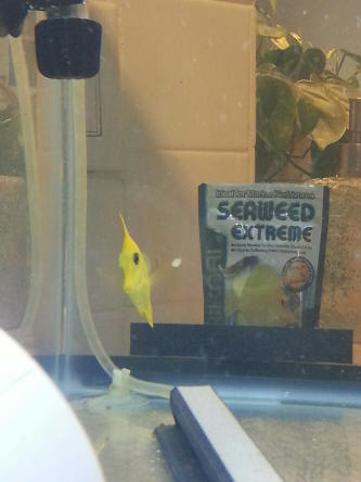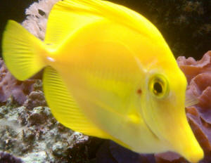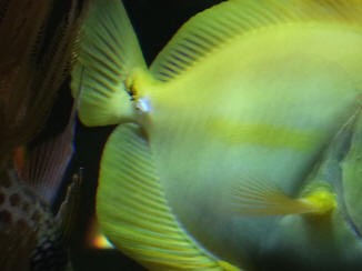 give. Thanks so much!! Melissa <Cheers, J -- > Yellow Tang >Hi Crew, >>Greetings, Marina this morning. >Have a Yellow Tang about 5 inches long. It is fine except for a "habit" it has developed. (I think) There is one certain live rock it seems to keep hitting with the tail and tang portion of his body. When he is facing you straight on you can see the scales are rough but no other marks etc. Because of this repeated hitting of his tail on this rock, little light red spots have appeared. Are these bruises, or is there something else going here? >>Well, while Yellow tangs are known to sometimes be aggressive, it's not normal for them to be so with inanimate objects. It sounds to me as though you have the beginning of a possible parasitic infection. His scratching (and the openings in the skin) will leave him open to secondary infection. >He eats very well seafood gourmet, seaweed, Spirulina, general pellet food and parboiled broccoli. >>GREAT! We love to hear of well fed fishies! >I have put malachite green in the tank for the last three days (darting and scratching). Our local dealer said he had no idea except to use Melafix treatment. I thought I would ask the experts. >>Ex-who? LOL! Hardly an expert here, but I've had a bit of experience. It would be helpful to know (if you have this information logged) your water quality parameters, include residents as well, timing of additions, anything and everything is helpful. >>Anyway, this is my recommendation: set up a quarantine/hospital tank for the fish. IF you have Ich, then you'll do best to remove all fish to hospital and allow the tank to lie fallow for 6-8 weeks (especially if you have invertebrates in the tank). When you pull the tang, perform a freshwater dip, matching the freshwater to the salt for pH and temperature. Then place him in quarantine, where you can treat him (assuming he's otherwise fat and healthy) using hyposalinity (very low specific gravity), on the order of <1.011-1.010 is what works for killing Cryptocaryon and Amyloodinium. While he's in q/t, (bare bottom tank, with pieces of PVC for hiding spots and "structure") be sure to siphon off the bottom of the tank every day, this helps to remove cysts that have fallen off the fish and prevents reinfection. >>At this time you can also treat with a good broad spectrum antibiotic to avoid/treat secondary infection (since he's rubbing himself raw this is likely). Many folks like Melafix, I happen to like the results I've seen with Spectrogram, other folks like Maracyn (also Maracyn II). He'll need to be treated like this until you see clearing of the bloody bits, (I know you haven't mentioned seeing any spots, but I know of no bacterial infections in fish that cause itching), then leave him in normal conditions until the display has run fallow at least 6 weeks (you can also raise the temperature to 80F-83F to speed up the life cycle of the parasite). Assuming that the infection is low-grade, and that the fish doesn't experience a relapse, you should be able to utilize these treatments and be done with it. >Thanks in advance for your time and help. >>You're quite welcome, we want folks to keep their animals thriving and with them a long time. SUCCESS! That's the goal. If you have any other questions, please feel free. Best of luck, Ceil! Marina Fuzzy Lips Hello, <cheers> My yellow tang has fuzzy lips. I understand that this is likely a fungus. <a common misdiagnosis: it is much more likely to be a bacterial infection (true fungal infections are quite rare). It is still to be treated with the same antibiotics in a bare-bottomed isolation tank. Use a Furazolidone and Nitrofurazone mixed med, double dose daily for 5 days> I have read about references to medicated foods but I can't find anyone who sells them. <hmm... mildly effective here. A swab of the lips with Merthiolate or iodine would be even better. Do avoid staining the eyes or gills>> Are you aware if any are more efficient than others and where I can find them? <they are weak but helpful if fed for 11-14 days without other foods> Also, are there negative ramifications to the other fish who are not sick? <no harm here> I have also read about garlic oil. <dubious if it even works at all. More of a preventative or placebo than primary treatment> Any experience with that as a medication or preventative? <I wouldn't trust my fishes life to it> Thanks! Ana M. Saavedra <best regards, Anthony> Lip damage to yellow tang Dear Bob, <Anthony Calfo in your service while Bob is said to be in Australia despite 8 claims, at last count, that he was sighted at an Elvis impersonator's convention in Las Vegas> I got a yellow tang from a friend with a damaged mouth. The mouth was damaged by fighting with another tang in that tank. I have had the tang for the last 6 weeks and the mouth is not bleeding anymore and the fish has gained some weight but still looks thin. <soak its green foods in a fatty supplement like Selcon (very helpful...do keep refrigerated though)> The lips however have not grown back. It is swimming around, eating Nori and hair algae in the tank and seems okay except for the missing lips. Will the lips eventually grow back? <hard to say without seeing it but sounds unlikely. Soft tissue and muscle will regenerate to an extent... but a large chunk that included cartilaginous matter will not. As long as it is feeding well, it sounds like you've done a gracious and merciful deed. Keep up the good work. Kindly, Anthony> Karun Missing Lips on Yellow Tang. (& quarantine questions) Good morning crew member of the day. <<Good day to you, crew-member JasonC here...>> I have a Yellow Tang that I have had for six-seven problematic months. I always have a fresh piece of Seaweed Selects hanging in my 55 gallon FO tank and feed it frozen krill and/or Formula Two daily. The Tang has not grown at all, turns pale on occasion, developed a few mm long scars on each side just above his lateral lines, and his latest trick is the disappearance 