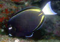 the Eyestripe or Dussumier's Surgeonfish; palani in HI. This is a highly
