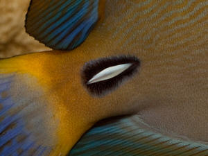orange/black coloration is prominent around the operculum and the pale