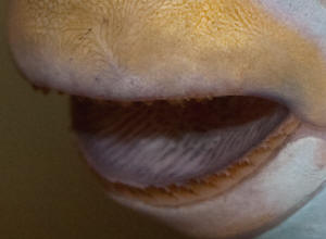 on its face, body, and fins, and yellow around its eyes. I'm