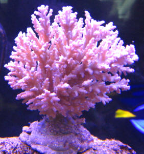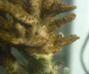 Montipora sp. tank 8/13/05 Dear WWM crew, I am planning on setting up my 40 breeder (36X18X16) as a Montipora sp. tank. I just wanted to run some equipment by you and to if I'm on the right track. My tank is not drilled, so a continuous siphon overflow (1400 gph) with a 960 gph Iwaki MD pump. I have been inspired by J. Sprung's refugia and want to run a miracle mud sump either 24X10X12 or 30X12X16. <The bigger...> I plan on using a 4X96w Orbit P.C. fixture over the tank. I am uncertain of which protein skimmer to use. Any suggestions? <Likely an Aqua-C product. Please see here: http://www.wetwebmedia.com/aquacskimrfaqs.htm> Thanks a lot. Your site is like an oasis in the hobby. Sincerely, Mike <Ah, wish we were having some tall, cool ones about the oasis... Bob Fenner> Nano Acroporas & clams Good morning crew <Alex> Do you guys know If I can have Acroporas & clams in my 10 gall nano reef system ? I'm running It with 8 watts per gall with a Rio 600 pump. I know I should not have a problem with light & flow, but my LFS told me it could not be done. Clams yes Acroporas no. I know Acros are very aggressive so I should provide a lot of distance from each other. What do you guys think? Thank you for your time! <Mmm, can be done... but not easily... by "clams" I take it you mean Tridacnids... get too big... and Acroporas generally require high and consistent water quality... difficult to achieve in such a small volume... though possible, have seen done. Bob Fenner> Montipora Trouble Hi gang, Quick question (hopefully). I am on my third frag of a very hard to get but popular purple Montipora frag. For some reason, I keep bleaching them. At first I thought it was because I put them about 6" off the bottom immediately after receiving them, and wasn't putting them low enough and letting them acclimate to the light. However, when I received the third frag, I put it all the way on the bottom of the tank, right on the sand. It still didn't help, as one corner turned brown then bleached. However, the middle to left part of the frag is still purple, but I fear the browning and then bleaching is spreading. I had it on the bottom, somewhat under a rock for some shade. Panicking, I moved it up a couple of inches several days after being on the bottom to try and save the frag. What am I doing wrong? My lighting is as follow: 2x250W 10K MH, with one 400W 13K bulb in the middle. Then there are 2x96W PC actinics. I put the coral under the 250W MH, not the 400W. This doesn't seem to happen with my Acro frags, which I've done okay with. It only seems to happen with the Montipora frags. Any thoughts? >>>Hi Brandon, Doesn't sound like a lighting issue to me, but more of a current or water quality issue. Check your parameters and make sure you have decent current where you're placing this frag. Also, are you sure this frag was grown under lower lighting? If not, check into this. Cheers Jim<<< Too much Lighting? Every time I buy a frag of a Montipora coral, they turn brown? Too much lighting? What would cause this strange phenomenon? Most are purple to start with. <Several factors could be influencing this color change. High Nitrate levels, which act as a sort of fertilizer for brown zooxanthellae, could easily be the cause, as could old bulbs or low lighting. Hope this helps, mike G> Water Movement For Acropora Hello, <Hi there! Scott F. here today!> Do Acroporas do better with a direct flow of one power head or with 2 - 125gph Power Sweep power heads? I have a 10 gall nano reef tank with 1 Acro with plenty of room for more! What do you guys think? Thanks for your time! <Well, most of the Acropora that favor high flow will benefit from randomized, indirect flow. Laminar flow directly into a coral can literally peel the tissue right off of the colony. Better to use those Power Sweep powerheads, or even some sort of rotating return device, like the wonderful Sea Swirls! HTH! Regards, Scott F.> - Acropora Losing Color - Hello, When I got this Acro it was light brown with purple tips AWESOME! But I have noticed that Its purple tips has been fading away in time. And now the coral It's just light brown. I'm running my 10 gall nano tank with 8 watts per gallon with power compacts. And my water quality is perfect! My LFS said that for Acros I need metal high lights to keep those colors alive and bright is that true? <Quite often yes... what is not always obvious to aquarists is where there coral came from, the light the coral is accustomed to. In the tropics where stony corals are prevalent, the sun just bakes... is very, very intense; aquarium lighting is not even an approximate substitute. The browning of your Acropora is typically indicative of inadequate lighting.> I also have two awesome looking clams on the sand bed and they have not lost their beautiful color with my power compacts, what could this be? <Unless you've had these clams for several years, I would not use their color or current state as any judge of lighting intensity or even their health... clams can look excellent right up to the day before they die.> I have my Acro as close to the light as possible and my calcium reads at 450 ppm. I even have a power sweep power head for some wave action. Is there anything else I can do to get those colors back? <More intense light.> I've just started DT'S live marine as well for my clams that I've had for 5 months and Kent marine Tech 1 Iodine for my other corals. <This is a lighting issue and not an additive one.> Thanks for your time <Cheers, J -- > Lighting Acropora Good Afternoon Mr. Scott <Hello again!> SORRY for so many questions but you give the best advice!!! <Never apologize! Thanks for the undeserved compliment...We have a lot more talented people here on WWM than myself, but I'm happy that I've been able to help you!> Color changing Acropora... I'm running a 10 gall nano reef tank with 24 hour Orbit lighting system with 8 watts per gallon. When I got a Tri-color Acropora from my L.F.S it was nice light bro