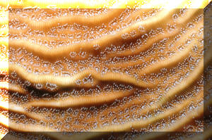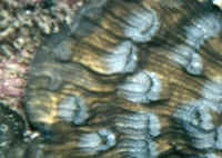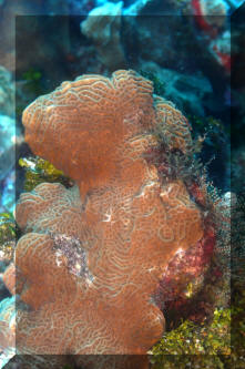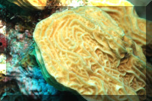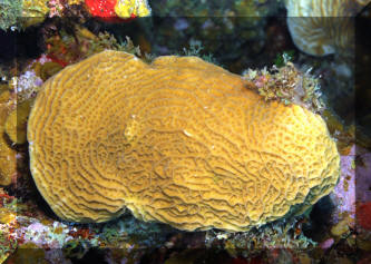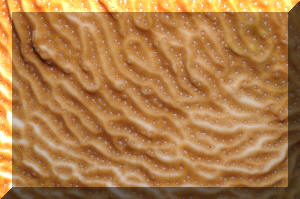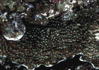 on a sloping reef. Distinctive polyps appear star-like in valleys. Septa and