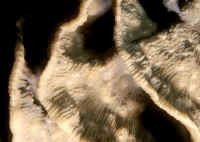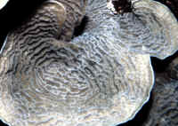 edge. Ridges and valley discontinuous. Corallites are tucked into ridges like no other member of the genus.