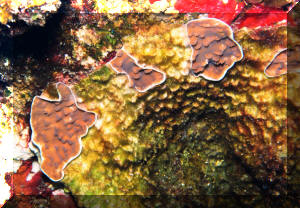 Encrusting colonies of discontinuous reticulated patterns of ridges and