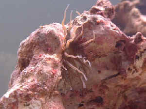 Aiptasia or other My name is Daniel and my aquarium is fairly new. I just bought some Fiji that had unbeknownst to me an anemone. I don't have a camera so I will describe it for you. It is approximately 1 cm in height. It has eight arms coming from the mouth with over 10 short (almost looks like grapplers or hands) coming from each arm. It is pink in color and is translucent (essentially I can see through it). It has grown 1/2 cm in four days. It doesn't seem to have the longer tentacles characteristic of all of the Aiptasia pictures I have seen on your site. I really appreciate any help you can give me. Thanks. <well I would kill the pest anemone...sounds as if its an Aiptasia or glass anemone of some sort. get rid of it, IanB> Mystery in Tank <please resend your picture unzipped and as a downsized web-courteous jpeg (a few tens to a couple hundred kb maximum). Thanks kindly, Anthony> Hi! I was wondering if you could help me identify these mystery things that came with some live rock I bought at my LFS. At first I thought it was Aiptasia but it doesn't look like any of the pictures I've seen of that. It appears like a translucent flower, it retreats back into the rock when startled, but I do not see a tube. Thanks so much in advance! Amy