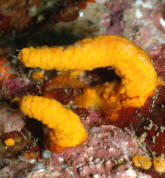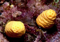 Sulfur Coral, Yellow Encrusting Leather Coral. Below: a colony and