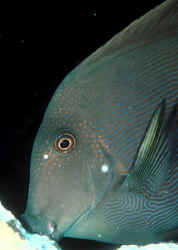 3) Brown and Red Algae They're mostly marine, most common as the kelps, attached seashore forms. There are many smaller, even encrusting forms that "reef" aquarists come in contact with, sometimes to their chagrin. 4) Diatoms and Dinoflagellates These are single celled, microscopic algae, ubiquitous, mostly beneficial in terms of nutrient cycling, oxygen production, competition with undesirable forms. Though diatoms may appear as brownish scums on tank walls, decor and gravel, they rarely cause problems in marine aquaria. One exception is the genus of Dinoflagellates called Amyloodinium (formerly Oodinium) a real infectious disease scourge. Although at least five of the algal Divisions are known to have symbiotic species that reside within invertebrates, the dominant forms are Dinoflagellates. These algae live in mutually beneficial relationships, taking up wastes and carbon dioxide, and providing their host with fixed carbon (e.g. sugar) and oxygen. The predominant reef-building corals bear these symbiotic zooxanthellae. See Delbeek (1987) Tullock (1988) and Hoff (1985). 5) Other Algae Groups: There are a few but we'll just mention: Euglenoids, Golden Brown, Yellow Green Algae and others that are generally not a problem in captive systems. Sometimes beneficial functionally and esthetically, other times unwelcome guests, algae are easily controlled if understood. Most can be avoided by designing and constructing your system to reduce light, nutrient availability, other problems can be lessened through maintenance. Control Methods: Can be divided into three or four categories: In general on the basis of most to least appropriate in terms of long term cost, safety and ease of use these are biological, mechanical, physical and chemical controls. A few pertinent facts hold for all methods of algae control. What's worth, "A pound of cure"? Prevention: 1) Chemical Activity: Algae thrive in nutrient rich water. It is advantageous therefore to initially provide as little "food/fertilizer" for them on setting-up your system. I take exception with most authors on the virtues of one salt mix over any particular other, and the special treatment (reverse osmosis, deionization, distillation) of the freshwater to make it up. These do little to restrict the introduction of nitrates, phosphates, other chemicals of use to algae. Instead, aquarists would do well to pay attention to more important sources, such as gravel, other decor, feeding, and the addition of "trace elements", vitamin, and other adjunct "mixes". The last three contribute far more to algae proliferation than any tap water and synthetic mix. 2) Circulation: Most micro-algae do better under stagnant conditions. Keep your water in motion with air pumps and/or fluid-moving pumps. 3) Light and Heat: This is a tricky area. If you are a fish-only or fish and non-photosynthetic invertebrate keeper, your situation is much simpler. For the most part, the kind, amount, and light-dark cycling of your system will be a matter of personal taste; what looks good to you. Alternatively, reef-keepers, other folks wanting to grow algae, people with invertebrates hosting endosymbiont algae are going to have to strike a balance of favoring desired algae over those they want to avoid. Of the proper wavelengths, this comes down to not too much, or too little duration and intensity. As a practical corollary; often, for your particular circumstances, more intense light over longer photoperiods favor macro-algae over micro. In other situations, the opposite holds true. More specifics on these parameters are offered in the next Section. Similarly, and tied together with high-heat-output lighting, there is an ideal range for the forms of algae you want and those you don't. Here comes another broad generalization. Most of the algae offered in the trade hails from the Caribbean, particularly Florida. It grows best in waters in the seventies (degrees F.). Many of the runaway algae problems I've seen were due to the water being too warm (in the mid-eighties) and fluctuating too much, negatively impacting the health of the desired algae and other livestock. 4) Filtration: Please see the set-up and sub-pages for a thorough re-discussion of different forms of filtration. Particulate filters are least useful in algal control, but do aid by simply removing sediment that might provide space for algae growth. Chemical filtration is generally unrealistic, but use of carbons may go some distance in preventing full-on blooms. Most of the products sold around the world as nitrate, phosphate "removers" are worthless; either they don't work at all under the conditions, or minimally allowing too high dissolved concentrations. Biological filters of several designs, if properly engineered and operated, are the key factor in keeping your system balanced in your favor. You can win by launching biological warfare with bacteria cultures, having these microorganisms live in your filter, preventing algae growth by removing nutrient from the water. Foam fractionators, aka protein skimmers reign supreme in preventing micro-algae; they are tops in expediently removing organics that might otherwise fuel pest-algal growth. 5) Macro-Algae: Are useful in controlling micro-algae. They cut down on light and use some of the nutrients otherwise available to undesirable forms. The fast growing Caulerpa and encrusting corallines (a group of Red algae resembling corals) are best. There is evidence that the latter produce chemicals that preclude the growth of micro-algae, especially the Blue-greens. 6) Pollutants: Control of these is very important. Food for algae comes from feeding your livestock, adding "trace", vitamin and other chemical "additives". Be careful concerning adding anything to your system. Wear dedicated rubber gloves to prevent pollution form your hands, arms. Algae are almost entirely composed of water; just a speck of solids from the above sources can produce several orders of magnitude