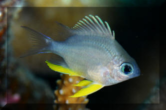 You know the damselfishes (family Pomacentridae). Those feisty, generally small, mostly shallow water marines that are universally used for starting saltwater aquariums. Well, with more than 325 (and counting) species, you can imagine there's more to this group than ammonia tolerance. And there is. Introducing, three relatively unused, but great species of an almost unknown (and unpronounceable) genus Amblyglyphidodon ("Am-blee-gliph-id-oh-don")! Damsels as a Group: Damselfishes are an extremely important group of ubiquitous, circumtropical coral reef fishes. Along with the Clown-Anemonefishes (Amphiprion, Premnas, subfamily Amphiprionae) damselfishes make up the family Pomacentridae. Damselfishes (subfamily Chrominae) provide a vital link both as reef forage fishes as well as excellent beginner marine aquarium specimens. Their extensive use is well warranted considering their diversity, beauty and tolerance of chemical and physical conditions, gregariousness when crowded and general compatibility with fishes and invertebrates. Most damselfish species accept all types of food eagerly and are disease resistant. The Genus Amblyglyphidodon There are seven nominal species of Damselfishes in the genus Amblyglyphidodon, but this story pertains to only three of these. The others are not nearly as attractive, abundant, or geographically near opportune collecting localities. For the sake of completeness, I will briefly mention these "other" species.