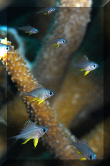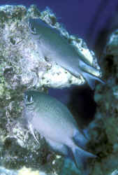 Bibliography/Further Reading: Allen, Gerald R. 1975. Damselfishes of the South Seas. TFH Publications, Neptune City, N.J. Allen, Gerald R. 1991. Damselfishes of the World. Aquarium Systems, Mentor, Ohio.271pp. American Society of Ichthyologists and Herpetologists, 1978. The Biology of the Damselfishes a symposium held during the 56th annual meeting of the ASIH. Rosentiel School of Mar. & Atm. Sci. U. of Miami, 1980, 145-328. Emmens, C.W. 1984. Damselfishes. TFH 9/84. Fenner, Robert. 1998. The Conscientious Marine Aquarist. Microcosm, VT. 432pp. Fenner, Robert. 2000. Three great damsels (genus Amblyglyphidodon) for marine reef and fish-only systems. SeaScope v.17, Winter 2000. Flood, A. Colin. 1992. Those darling damsels. TFH 8/92. Myers, Robert F. 1999. Micronesian Reef Fishes; A Field Guide for Divers and Aquarists. Coral Graphics, Guam. 216pp, 192 plates. Pearson, Scott. 1993. On photographing the feisty damsels. Sea Frontiers May/June 93. |
