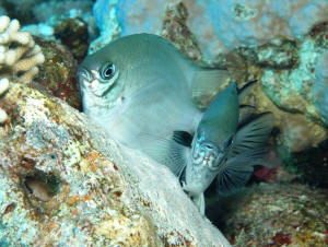 In Conclusion: As in other aspects of life there are real Catch-22s (Joseph Heller, rest in peace) in what's available to the marine aquarium hobby in the way of livestock. Way too often, while visiting in distant and near places with friends in the collection side of the trade, I "run into" apparent anomalies like the Amblyglyphidodon Damsels. "Why don't you catch and ship these"? I ask. "No one has asks for them", my associates tell me! How to get beyond this "founder effect"? That is, what best way to introduce new species to the industry and generate customer demand? This is it. Whether you're stocking a fish-only (FO) or full-blown reef set-up do consider these three species as real possibilities. They're larger, smarter, hardier and more outgoing than the standard damselfish species offered in the trade. What's more, they're tough enough to hold their own, yet reef-safe.
