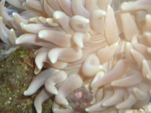 their zoo., Good luck! -Kevin> Cheers, Ben Chua (Singapore) Banged-Up BTA? (Anemone With Whitish Streaks) Greetings Crew! <Hi there! Scott F. with you today!> First let me start by saying how much I enjoy the new Conscientious Aquarist Online Magazine. A great addition to an already incredible site! <Glad to hear that you like it! Adam and I really want to make it better and better. This is just the beginning! We're lucky to have some great people here to help us make it all happen! Look for next issue in July, and monthly starting next year!> Now for my question. I just got a rose BTA for my minireef. I have been on the lookout for a BTA for quite a while and just none came around that looked truly healthy for me....until this one. I fell in love with it as soon as I saw it! I examined it closely in the store and being satisfied, brought it home. It immediately wandered in my tank for a day and has been in the same spot for several days and looking happy. <A good sign> I noticed several white streaks around it's "mouth" (don't know what it should be called) <yeah- "mouth" is just fine!> that I did not notice when I bought it. They have not changed in the last few days and it is still in the same spot, looking good and readily eating the small tidbits of food that I feed it. I know that white on most any anemone is bad and I am concerned. Attached is a pic. Is this anything to worry about or is just the natural coloration of this specimen? <Well, to me- this specimen looks otherwise healthy. If you are not noticing necrotic areas, or obvious physical traumas to the animal, then you are probably okay. Sometimes these streaks are simply areas where the animal came into contact with something in the immediate environment (i.e.; a rock, etc.), and are analogous to a scar on a human. it may simply be coloration, too. Do keep an eye on the animal. However, if it appears otherwise healthy, reacts to stimuli, and feeds regularly, I wouldn't be overly concerned.> Thanks again for all your help and keep up the incredible work. You guys (and gals) don't get nearly enough credit for all your hard work. Ray <Ya know what, Ray? just knowing that we're helping others enjoy the hobby that we all love so much is pretty darn cool! keep sharing with others and growing in the hobby yourself! Good luck! Regards, Scott F> Ill anemone... another ingredient for coral soup 4/22/04 Hi There <howdy> I got a small BTA 3 weeks ago and over the last week it is looking real ragged. <please do know and practice necessary QT for all new livestock (snails, corals, fishes, anemones... everything) to improve rates of survival and reduce the introduction of parasites, pests and diseases> I have a 90 gal with a small hammer coral, growing Galaxea, several small colonies of zoanthids. I have read a lot on the anemone problems and have come to the conclusion that it could be anything that is affecting my anemone. <well.. the lack of QT and the unnatural placement of this motile cnidarian in a tank full of sessile ones were the first two mistakes. Big ones at that> I have learned that having an anemone in a tank of corals isn't the best thing. <correct my friend> I got it mostly for my clown who absolutely loves the anemone. <it is a most beautiful symbiosis to observe... but do know that the clown does not need it. Many clowns (most in some areas) live entirely without host anemones. And anemones in captivity suffer a terrible rate of mortality for not being handled properly> I have 2-250 watt 10000k and 1 150 watt 20000k. <very nice> I am an anal water quality watcher and test often. Nitrate nitrite and ammonia are zero. <do allow some nitrate (5ppm or so) to linger to feed corals/anemones> Calcium is low, about 300. ph is 8.0-8.3 night day. <and the pH is flat too. Do address these issues with large water changes to bring you back to par and then carry on with Kalkwasser supplementation IMO> The anemone has a very rigid look to it like a flat plate with its tentacles being shriveled. I have tried to feed it and it weakly attempts to bring in the shrimp but the clown removes the food. I don't think it is food or light. <agreed... perhaps just a hard acclimation. More time is needed> My real question is how long do I give the anemone before I remove it so it doesn't die and foul my tank. <you see now my friend why this observation period should be conducted in a QT tank. You are in a pickle right now between not wanting to sacrifice the anemone prematurely, and not wanting to wipe out a tank. Please do not underestimate the need for QT> Also, what corals will a clown take to that aren't as tough to keep?? <most all corals will suffer from hosting a clown in time. To satisfy your need to see this, do consider setting up the anemone (alone with the clown) in an inline refugium at the very least, if not in a separate and dedicated tank altogether> My clown seems much happier with the anemone. <ahhh...no. All kidding aside, the notion is charming. But not true. Statistically, more clowns are found without anemones and the family manages to survive and persevere in time <G>> It gives him a break from my psycho Kole tang who punishes Nemo from time to time <lace the tangs Nori with some Xanax and all will be fine. Kind regards, Anthony, <<Who never dived in his life. After diving thousands of times over forty plus years in the tropics I have NEVER observed a clownfish that was NOT in association w/ a symbiotic Anemone. What? RMF>> Deadly Transgressions - Death of an Anemone, part Deux >Thank you for the advice! >>Very welcome, Justin. >It's been about 24 hours since my anemone died, and the water changes saved the rest of the fish and corals. >>Thus the mantra, "When in doubt, Do a Water Change!" >I was worried about my Nemo (Ocellaris Clown) being homeless, and apparently so was he. Now that the anemone is gone, he has taken to my Alveopora, flowerpot coral. >They have certainly been known to host stranger things. >Is this a health