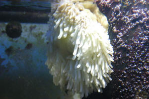 Urgent anemone help 12/28/05 Hi, I hope this is the right address for help topic. I bought a sebae anemone yesterday at my LFS and I probably shouldn't have. In the dealers tank the current was very strong and many of the anemones were being tossed around. I bought one that looked like it was planted to the ground behind a rock. when I got him home he didn't look good, and after reading your site I realized he is somewhat bleached. <Should have went to the site first before you bought it and learned more about their needs/requirements.> He was still moving so I left him alone for the night. This morning I woke up and he was in horrible shape. I isolated him, put some phytoplankton in the water and tried forcing a very small piece of krill in his mouth.<Never try forcing food into an anemone, won't work.> He is starting to deteriorate on one side and is losing some tentacles. Is it to late for him? He is still alive, is there anything I can do to help? <Sounds to me like this anemone wasn't in too good a shape when you bought it. By your description, either take it back to the LFS or flush it. If allowed to die in your tank, you will lose most everything else. A 29 is not a large enough tank for an anemone and your lighting isn't quite strong enough to support one.> Tank is a 29gal with a current satellite fixture dual bulbs, the actinic blew out today so I'm in a bit of a pickle. 30lbs of live rock, 3 damsels,2 striped Dottybacks, 1 zebra goby, and 1 Atlantic anemone. Water is ph:8.3, 0 nitrite, 0.15 ammonia, 20-25 nitrate temp at 80. <James (Salty Dog)> Please respond quickly thanks <You're welcome> Shawn Injured Anemone - 12/23/05 I was so pleased to find this site just wanted to say thanks first. <<You are welcome.>> When I got up this morning my new yellow based anemone had got itself sucked up into one of my power heads and managed to get some of its tentacles torn off. <<That's not good.>> I need to know if it will recover on its own, die, or what I can do to help it. I'd be grateful for any help you can offer, Thanks, Dave E <<Well Dave, not a lot you can do other than ensure pristine water quality/good water flow...and figure out why it got in to/keep it away from the powerheads. EricR>> Freak Anemone Accident 10/30/05 I've searched and looked, for hours, for a situation similar to mine without success. I hope that this is not a repeat question so that the information might be helpful to others besides myself. I have a bubble tip anemone that has been doing fantastic for 5 months. I feed it fresh, meaty foods twice weekly. I has doubled in size since I acquired it and is very beautiful. <Sounds good thus far> Now for the problem. 2 days ago, while doing regular maintenance, a rather large piece of salt creep fell into the tank from the protein skimmer (hangs on back of the tank) and fell right into the center of the anemone, causing it to close very quickly taking the salt inside. <Man! Have gotten a bit of this sort of crust into my eye at times... Sting City!> It hasn't opened since and has ejected all of it's stomach contents, which I removed to keep from fouling the tank. <Good> What little I can see of him near the center seems to be badly scarred, similar to what a chemical burn might look like. I have not been able to see it's mouth at all. The arms are sticking up and are inflated, but the animal is not opening up. Can salt that has not dissolved kill this animal, or is this something it should recover from? <Will likely recover in time... a few to several days, weeks> Thanks in advance for any wisdom you can offer and thanks for a fantastic resource. Perry <A pleasure to share. Bob Fenner> Condylactis gigantea vs........ the filter intake 8/13/05 I have had a Condylactis for over a year now in my 100 gal tank 2 VHO 2 blue actinic total of 440 watts and it was growing like crazy it had quadrupled in size since it was purchased. We recently had to tear down the tank due to remodeling and we put it in a 10 gal with just a damsel. Here is the issue, he has always liked to wander and i came home on Tuesday and he got stuck in the filter. <... too common> Half of his tentacles got ripped off on his way back out. ( We turned off the filter first) I decided to leave him in the tank even though i thought he was dead because i am very attached to him. <Good> Now today is Friday and he has started filling his tentacles back up. I was wondering what the chances are that he is going to live. <Impossible to say... many such incidents do result in anemone deaths... but some recover> Despite the fact he only has half of his tentacles he looks otherwise normal even back to his old color( deep pink/purple). What are the chances that he will pull through this and is there anything I can do to make sure that he makes it? <Good, consistent water quality, getting the animal back in its larger system...> I really love this guy he is the most beautiful one that i have ever seen. Please help thank you. <Life to you my friend. Bob Fenner> Using WWM, anemone health, systems 8/13/05 I have a purple tip anemone and he has done just fine until now. I put in 3 ½ gallons of fresh water in my 29 gal. tank. I forgot to add salt. <!> The anemone looked like he was losing oil into the tank and put his tentacles in his mouth as he moved deep into a rock. I took the water back out and added some salt. I then put the water back in the tank and checked the salt level. The salt level was still a little low. What signs do I look for if I feel my anemone may be dying? Thank you Debbie <Please read here: http://www.wetwebmedia.com/marine/inverts/cnidaria/anthozoa/anemones.htm and the linked files above... Don't write... read. Bob Fenner> Anemone died... maybe PaulH, MAC are right, the industry, hobby should be "regulated", controlled, put out of business 8/9/05 Dear Bob, Once again thanks for the assistance and site. I had a Florida Condy anemone for about 2 months now and it seemed to be doing fine. I fed it min