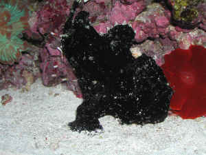 3/17/10 Anglers, fdg. -- 12/15/09 Questions on Antennatus tuberosus... sys., fdg. 12/23/08 Happy Holidays WWM Team! <And to you and yours Art> Please allow me to first say thank you for all you do for us, sharing your knowledge to the head scratchers all over the world. <Heee, am one myself> I now come with my curiosity on my frogfish (Antennatus tuberosus). I've had this fella for 3 months now, originally in a 55 gallon with 3 inches sand and 50-ish lbs of live rock, with a Domino Damsel about 2.5X his size and a Scooter Blenny. The first two months he ate his worth of feeder shrimp, 3 or so per week. The past month I moved him over to his very own 8 gallon nano reef with 2.5 inches of sand and 10-ish lbs of live rock. If it makes a difference, coral includes 5 half-dollar sized mushrooms and a frag of pagoda. There's also Chaeto the size of a fist to help with water quality. I feed using tweezers. It seems it only eats about 2 (lately only one) shrimp per week now, and on split feedings (1 at middle of the week, 1 at the end). Is this common? Could the nano be the culprit? Should I even be worried? <Mmm... I'm always leery of potential problems with small volumes... they can/do change chemically, physically... and hence biologically much too quickly at times... and though not at all fast moving, Anglers do produce goodly amounts of waste... How big is this individual? It is likely "small enough", as the species tops out at 9 cm.: http://www.fishbase.org/Summary/SpeciesSummary.php?id=11150> I acknowledge that this species is not commonly found in the trade. Consequently, there aren't too many care sheets for the Antennatus species online as well. I've even checked Fishbase and even frogfish.ch, but not to much avail. If there's any special requirements for the Antennatus that I could use, I'd greatly appreciate the help. Thank you in advance :-) Warmest Wishes, Art F. <Mmm, I have never seen this fish offered in the trade... I think it should be fine in the small tank, but maybe the Cnidarians are mal-affecting it some way... If in doubt, I would move it back to the 55, even a refugium tied into a larger system. Using willingness to take food for Frogfishes is a good indicator of health IMO/E. Bob Fenner> Re: Angler Feeding 11/7/08 Hey Scott, got another question for you concerning my angler fish, he's about an inch and a half long and decently active-fishing around the tank and what not. I put smaller fish in the tank, a couple of damsels for him to feed on, and I feed all occupants ghost shrimp as a live food source over frozen twice a week. I've had him for over 2 weeks and to my knowledge he hasn't eaten once. <Was the end of each shrimp accounted for? Have you ever seen this fish eat? Is a good idea before purchase.> How often should he eat, and should I supply another type of live food source for him-guppies maybe? <These should be eating every few days, but it is not unheard of for a hunger strike to last weeks. Considering all the change in your tank as of late it is not surprising. Try different foods, check http://www.wetwebmedia.com/anglerfdgfaqs.htm. Do keep in mind any frozen foods will need to be presented as live, with some wiggle to it! Scott V.> Re: Angler Feeding 11/7/08 Thanks for the info., I never asked the pet store if he ate-that would have been a good call, I'll know next time! <Always a good question, better to see it yourself!> Since asking the question, one of the damsels has gone missing and the Angler appears to be bigger in size-I hope this is a sign of him feeding. <Sounds like it.> I do keep a varied diet for my fish, and don't mind feeding him damsels and Chromis verses dead on a pole. His coloring and active nature seems to fit well in my tank. I'll keep you posted! <Please do.> Thanks again, Ole. <Happy to have helped. Scott V.> Frogfish Not Eating -- 9/29/07 <Hello, Brenda here> I have this frogfish and it is very sick. I noticed it today and would like to know what is wrong with it. The frog fish is 2.5 inches and has been living in a 15 gallon tank for 1 month. <This is an extremely small tank for this fish. Is this your quarantine tank? A 15g tank is likely very stressful on this fish.> It recently stopped eating and its skin has started to turn crusty and black. <Is a common problem for these fish.> Every time I feed him he just starts coughing it out. He also has been acting weird like swimming around a lot which is weird because he never does that. I know he is not trying to camouflage, he has never turned black. I am not able to identify what kind of frogfish it is because the place where I bought it said it was assorted. I feed it krill and I just changed the water yesterday. <Have you tested your water parameters? Try feeding live saltwater feeder shrimp. More information on these fish can be found here: http://www.liveaquaria.com/product/prod_display.cfm?pcatid=76&N=0 and here http://www.wetwebmedia.com/anglerfdgfaqs.htm Brenda> Sargassum Fish 4/14/07 First off, I would like to say you all do a great service to the fish lovers everywhere. Keep up the good work. <Am trying> I just got quick question about my new Sargassum fish. I was feeding my Panther grouper 16"L some goldfish of a snack. <Not a good idea... see WWM re Feeding Feeders... http://wetwebmedia.com/goldfshfd.htm and the linked files above> I through <threw> in about 5 in and my angler ate 2 of them. He's 4" long and is eating silver sides very well. He was right up against the glass and I saw a breathing hole under each of his pectoral fins. I never saw them before. Do they use them all the time or just when there full? <Mmm, more when they're full...> Thanks Matt Owens <Neat animals... Bob Fenner> Frogfish/Snowflake Eel 1/2/07 Greetings to the WWM crew! <Hi Gretchen, Pufferpunk here.> I've a small problem, I think I've fallen in love with a frog fish! <Certainly can't blame you on that one! I'm crazy about these weird, wonderfully camouflaged, lumbering, creatures myself.> I sa