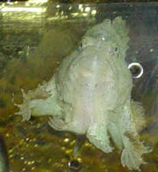 You know these fishes, if you can just find them in a tank or even harder, hidden amongst rubble and coral on a reef. They come with their own "fishing apparatus", an illicium (line) and esca (lure) for luring unsuspecting prey to their capacious maws. If they have pelvic fins on their girthy bodies, these are located ahead of their pectoral fins, and often used to "walk" their owner about. The group includes many suborders (five in the present, presented scheme) and sixteen (to eighteen) families, about 65 genera and three hundred species... some are dominant forms in the abyssal depths, others lurk just under the substrate... all are cryptic and unseemly in appearance (at least to me...), though of course, "beautiful" in their own rights. A few species make their way into pet-fish markets... the most important element to keep in mind in their captive husbandry is their penchant for swallowing their tankmates... and the fact that they either must have live foods regularly supplied or be trained to take fresh/dead foodstuffs from a wiggled feeding stick. Species of Interest: