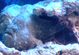 Re: please help identify this angler hello again.. just to give you a look at some new pics I took, that are much better quality and might give you new light as to what species of angler this is.. I thank you again for your help! here is two more. http://members.rogers.com/plaskosd/profrog.JPG http://members.rogers.com/plaskosd/sidefrog.jpg thanks again! Dave <Still looks like a giant/Commerson's to me. Bob Fenner> The Frogfishes Do Get Froggy and They Will JUMP! >Hello, >>Hello. >I have a 20-gallon (24' x 24' x 8') clam tank set up. My only intended inhabitants are Tridacnid clams and a few SPS coral frags growing out or small SPS colonies. There are several small pieces of live rock in there as well. An opportunity to buy two gorgeous and seemingly healthy juvenile frogfish has fallen into my lap and I've been researching like crazy because I'm in love with the idea of putting one or hopefully both of them in this tank. >>One, not both. >I am prepared to meet their feeding needs and I think the tank would be perfect. No one I know has any frogfish experience, so at this point it's all reading'¦ I was hoping one of you folks could give me your thoughts on this idea. >>It could certainly work quite well. Know that you can NOT use copper in any way, shape, or form with frogfishes. Also, if fresh from the wild, make CERTAIN they're eating--frozen foods if at all possible (from feeding stick). If you've got the time and the determination, train them yourself to feed from a feeding stick. >Attached are pictures of the little guys (approx. 1.5' and 2' at this point). >>OH MY GOD THEY'RE GORGEOUS! I'd set up another tank just to have them both. >We aren't certain on the identification, but think the yellow one is a Warty and the red is A. pictus. What do you think? >>Common nomenclature is very difficult to work with. It would be helpful to know where they were collected, as this would narrow down the search considerably. I suggest searching http://www.fishbase.org In any event, you can count on them to follow some typical behavior patterns (as I'm sure you know): reluctance to swim about (great for a small system), a predisposition to want live food only (juvies can be much more easily trained to take frozen/non-live foods, though). Do plan on more frequent water changes, even with the clams, and you may want to skim more aggressively. Other than that, I think it's a great idea, could look really gorgeous. Marina Thanks, Cheri |
