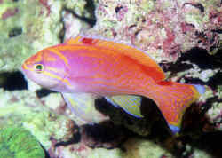 Anthias Quarantine And Introduction 11/6/09 Lyretail Anthias 6/25/09 Pseudanthias flavoguttatus Information 10/16/08 Hi, I'm trying to collect some information on Pseudanthias flavoguttatus (Red-Saddled Basslet, found that as its common name but unsure if its the correct common name). <These come and go... this is one of the more common, common-names> I need any and all information you can provide me with because the fish store that I work at can get these in and we have never heard or seen this fish in person (only recently viewed a couple pictures online and I want to get a couple for my tank provided they are capable of keeping in an aquarium). Thanks for reading this and I hope to hear a response from you! -Jon <I have no practical knowledge (or other) re this species of Anthiine. Have seen it on occasion at LA marine livestock wholesalers, but never kept it, nor know of others with such experience... I would be cautious here... keep in a small group, in a largish, well-kept system of size... offer live foods frequently... to gain an idea of its "touchiness". Bob Fenner> Pseudanthias ventralis... sel., care... reading Is Ventralis Anthias impossible to keep in captivity? <No> Can you give me some tips on how to successfully keep this fish; <Is posted... http://wetwebmedia.com/anthiina.htm and the linked files above> I have a sixty gallon tank with (peppermint hog, rhomboid wrasse, chrysogaster Anemonefish pair, McCosker's wrasse pair, a yellow and purple tang. And a 20 gallon qt tank. Thank you <Mmm, this system is a bit small, already too crowded. RMF> Anthias article pictures 10/2/06 Hello, <Hi