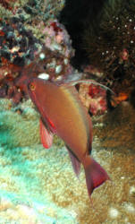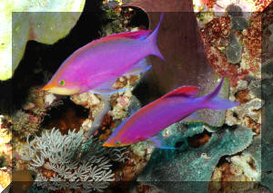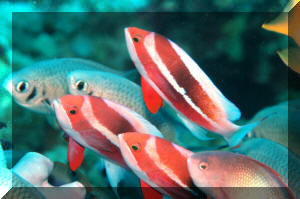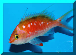 Summary: Anthiines can make a striking, albeit challenging, addition or a nice display on their own. Read up, provide them with an adequate, peaceful environment and frequent, appropriate feeding and you will be successful in their care. Bibliography/Further Reading: Burgess, Warren E. Salts from the seven seas. A general piece on the "butterfly perches". TFH June 1974. Carlson, Bruce A. 1979. The Longfin bass, Anthias ventralis, Randall, 1979. FAMA 8/84. Fenner, Robert. 1995. The fancy sea basses; subfamily Anthiinae. FAMA 6/95. Michael, Scott W. 1991. The Fathead Anthias (Serranocirrhitus latus) Watanabe. FAMA 10/91. Michael, Scott W. 1991. The Anthias: Jewels of the Reef. AFM 12/91. Nelson, Joseph S. 1984. Fishes of the World. 2nd Ed. Wiley. Pyle, Richard L. 1989. Lori's Fancy Sea Bass Pseudanthias (Mirolabrichthys) lori (Lubbock and Randall). FAMA 6/89. Pyle, Richard L. 1989. Bartlett's' Anthias Pseudanthias bartlettorum, Randall and Lubbock. FAMA 9/89. Pyle, Richard L. 1991. The Hawaiian deep Anthias Holanthias fuscipinnis (Jenkins). FAMA 12/91. Randall, John E. 1983. A new fish of the genus Anthias (Perciformes: Serranidae) from the Western Pacific with notes on Anthias luzonensis. FAMA 9/83. Randall, John E. 1989. Shen's Anthias Pseudanthias sheni Randall and Allen. FAMA 11/89. To: Part I |