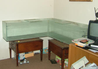 Aquarium Leak (Possibility For Catastrophic Failure?) -- 03/09/07 Hi there, <<Hello>> I hope you can help me out. <<I shall try>> We have a 140 gallon fish tank that is probably about 10years old. Last night my dad noticed water droplets on the outside of the tank and thought it was nothing until he put his hand over to wipe it and it formed an even bigger droplet and started coming out in a very very fine stream (more like trickling down). <<Bad news indeed>> I've read your website but most of the questions concern leaks in the silicone sealing - the leak that we have is on the side panel of the fish tank and is the actual glass itself. <<Yeeikes! I would drain this tank immediately for fear of catastrophic failure of the glass panel>> It is pretty much like someone stuck a pin right through the glass and caused a leak. <<Hmm...no youngsters (or oldsters) running around with BB-guns are there?>> Now what we don't understand is how it possibly could have happened and what to do? <<Can't say how it happened (likely something got knocked against the tank), but the tank will need to be drained and repaired/replaced>> My dad is looking for another tank right now but I want to know whether we can fix it with a piece of glass and silicone or just sealing that hole itself with silicone? <<'Patching' with a piece of glass 'might' be an option, though not often recommended...but simply trying to fill the hole with silicone is not. Replacing the entire glass panel is the better/recommended option, but considering the age of the tank, perhaps simply replacing it makes the most sense here. See if your local fish store/hobby friends can house your livestock while the new tank gets established>> My dad is also worried that the longer we leave the leak the worse the chances of it actually turning into a crack and leaking the whole basement. <<Worries me as well...depending on how low down on the panel the damage is, I can see the tank coming apart with a 'bang!'>> Should he be worried about that and what do you think is the best thing for us to do right now. <<Yes, be worried...and drain the tank...>> Thank you very much. An <<A pleasure to assist. EricR>> Cracked bottom, scratched second-hand glass tank repair 2/28/07 Hiya...I have a few Questions about a second hand tank I have bought. I have read through many of your articles but don't see any about cracks on the bottom. only sides. <Mmm... bottoms can be tricky... as most all tanks are "made" on their bottoms... the sides, front, back Siliconed down onto them...> The glass is 10mm thick and on the bottom there is a scratch/crack about 1 foot long. I can only feel it on the underside of the tank and not when I put my hand inside the tank.. (The tank is still empty). I was wondering what the best option for this would be. Would this make the tank weak? <Mmm... yes... It may be possible/practical to effect a repair by cutting out the entire seam inside the tank (including the sides, yes)... and fitting a new piece of glass inside, over the existing cracked bottom... Siliconing over the crack, and all the old/new corners... if the bottom is "very badly cracked", as in pieces missing, another piece of glass should be fitted, Siliconed in over the bottom as well...> I thought about Siliconing another smaller piece of glass onto it. <Mmm, not small... Really needs to fit "corner to corner"... though not tightly> I don't really care if it is not leaking just peace of mind wants me to do this, so I have not even tested for a leak yet. <I would not test it for such... it will leak, assuredly... and a simpler repair I would not trust> There are also 2 chips 1 at either end of the tank ..in the middle at the bottom, where the side meets the bottom. These are also not right through, but would this be a weak point? <Yes...> I hope you are able to make a little sense from that lol Thanks ...Jade. <Yes... Reciprocally, do my comments make sense to you here? The rationale for cutting out, replacing the existing Silastic is that way-too often there are leaks that originate "somewhere" when all the inside beads aren't of the same age/continuous... See the Yellow Pages, folks at a glass shop... 100% Silicone (no mildewcides...). Bob Fenner> Old Aquarium, sell... or repair? 2/22/07 I visited a local pet store and inquired about repairing a 55 gallon aquarium that has been sitting in my mother's garage for 20 years. I am 63 years old and I remember my father having fish in that tank when I was a child. Obviously, it is close to 70 years old; it is on a metal stand with wheels. <Neat!> The aquarium has a slate bottom with drain hole that appears to be in good shape. The problem is that one of the larger glass sides was broken and needs to be replaced. I have considered selling it in a garage sale or just giving it away, but the pet shop owner indicated that it might be of some value. <Yes; might be> He said that he doubts that a replacement glass would be advisable thinking it would probably leak and thought it might be better to use it as a terrarium. It occurs to me that if I installed glass of appropriate thickness and was successful with sealant application, the aquarium should be adequate to maintain fish. What would you advise. <Mmm, well, unless you're in a big hurry, I'd "shop" it around... see what it might sell for... And if all you're interested in is having a useful system... I'd trade it in for the money and buy a brand new outfit. OTOH, I do like antiques in the field... so, repairing it might be the way to go... with "matching" technology (likely Pecora sealant...)> If I were to install a new glass, could I purchase the glass from a local retail glass dealer? <Mmm, yes... if this were the route you settled on> What thickness would you recommend. <Likely 3/8 or 1/4" plate... The latter likely being what it is otherwise made of> Also, is it your opinion that the aquarium I have described would be of value as an antique? <Yes... And I do encourage you to cont