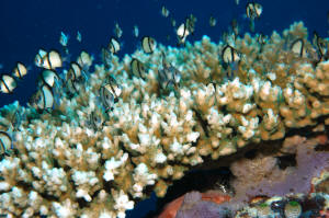 A beautiful Acropora  & Dascyllus pic by DianaF in N. Sulawesi.