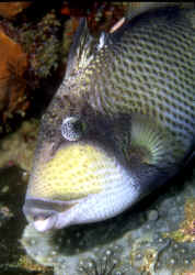 - Clown Trigger Problems - I have some pics of the clown trigger fish, also the queen angel is in another tank along with the tusk. Right now in my 125 I have the Emperor angel, clown trigger, and some damsels, I am thinking about adding a powder blue tang to the mix though. <Please hold off on this choice for a little while - is best to stock very slowly and let the fish get a chance to get to know one another before you add any more neighbors. Also, the Powder Blue is a notoriously ich-prone fish so you should quarantine FIRST, before adding the fish to your main system. More info on those tangs here: http://www.wetwebmedia.com/powdbluetg.htm > Anyway here you go, hopefully you can tell what it is that's on my clown trigger, thanks a lot. <Hard to make anything out very well from those photos, but I think it might be a mechanical injury - perhaps from trying to work over one of the other fish - wouldn't be too concerned.> Rene Brunetti <Cheers, J -- > Clown and Titan Triggers (12-3-03) Hello Bob,<Cody here today.> I was wondering if a 11 inch Titan Trigger could be compatible with a equivalent in length Clown Trigger? <Nope! The titans are known to be very aggressive and sometimes even go after divers in the wild! They also get very large and would require a huge tank.>And, if that's possible what size tank would you recommend them to be housed in? <Hundreds or even thousands of gallons.>How can you tell between male and female Titan Triggers? <Hmm, not sure on this one, try searching www.fishbase.org for info on this. Cody> Thank you, Titus Clown Trigger behavior Hey Crew, I have a clown trigger (3.5in.) in a 55 gallon that has been running for about 8 months now. The clown was the first fish I introduced after my damsels. Until a couple of days ago he would always have tons of personality and race back and fourth from one side of the tank to the other. About a week ago I added a yellow tang (4 in.) I don't know if there is any correlation, but a couple of days ago the trigger has been acting much different. If it is out, it isn't swimming around. It still eats, and the coloration looks normal, but it just seems like it is lazy or something. Also, when he is eating, he sometimes rotates onto his side, then flips back over. If you have any ideas, I would be most gracious to hear your diagnosis. Thank you Eric <Good accounting of your system and pertinent points. It may be that your triggerfish is "just bored" (a fifty five gallon system is a very small world for this species... it needs more room), but I do suspect you're correct in correlating the addition of the Yellow Tang with its feeding/behavioral differences. I would not be overly concerned, and suspect that all will "self-correct" in a short while. Do look into and invest in a larger system. Bob Fenner> Clown Trigger With Ich 7-25-30 Hi my name is Paula <Cody here, sorry for the delay.>and I purchased a tiny clown trigger from the company I work for. I never acclimated it to the system when it came in at work. I brought it straight home and put it into a twenty gal. with 15 pounds of live rock and 2 maroon clowns the clowns do not bother it. I noticed the trigger clown had ich on it's fin before leaving work and was hoping that being in an established system the fish could recover on it's own. Before going any farther my ammonia is 0 ppm my nitrites are 0ppm and my nitrates are 10 ppm and salinity is 1.018. I purchased the fish Thurs. it's now Tues. (5 days) no better no worse eats great a little shy unless he's being fed but is doing well so far. My dilemma is do I wait or treat with CopperSafe now. I have a 75 gal. with a Foxface rabbit, regal and yellow tang, blue fin angel, yellow headed goby, bi-color and lawn mower blennies, snowflake moray which will eventually go in with the trigger, and a Percula clown with two cleaner shrimp and a fire shrimp. The only time I have ever had a problem with Ich is when I first brought the 75 gal. home stalked with 1/2 the fish in it now, bought from individual already set up. That was a chore in it's self I carried 60 gal. of water back with me and kept all rock submersed separate from fish. This is the last fish I am buying for a long time I have wanted a clown trigger for several years but knew it was not reef safe and it gets so large I wasn't ready to tackle that feet until my reef was complete. Anyway I haven't dealt with triggers much I know what they eat and what they are like but am concerned with how the clown trigger will react to the CopperSafe. Also I don't like using this with out knowing a little more about how to mix it, I have purchased a copper test kit but CopperSafe doesn't have the number amounts just teaspoon or what ever. What is the amount I should achieve and how long do I keep it their. I have read .35 and others .25 and others as high as .50 although I feel .50 is probably to hi what amount will actually kill the parasite after it falls of the fish? Or should I try something else? wait it out? Lower salinity How low is low enough? I thought 1.016 but I have read 1.010 is that to low? I have a 2 1/2 inch cleaner would a 2 inch or less Clown trigger kill him? I fear yes if not I will try the cleaner shrimp first?<The trigger would probably eat the cleaner. Just add copper until the correct level is reached, put about 15 drops in the tank, if you are using the 20 gal. Then add more drops as needed. I would shoot for copper levels around .2-.25. Also if you want to keep the LR live you will need to take it out before treating. It would be best to also have no substrate as it can absorb the copper. The rock will need to sit in a separate container for at least a month before it can be put back in with fish. It would be best to also have no substrate as it can absorb the copper. Also if you use copper I would keep the salinity up to normal levels.> What do I do??? Help! How long does it take for a BABY clown trigger (1"-1.5") to change into his adult coloration <Just 