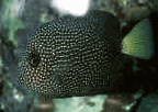 Naso brevirostris (Valenciennes 1835), the Spotted Unicornfish, sometimes called the Shortnose Unicorn Tang; mis-named both scientifically and colloquially. N. brevirostris has a long nose as an adult and there are Naso species with much shorter snouts; some Unicorns are even absent the "horn" protuberance on the head. This grayish-green bodied fish is occasionally imported from Hawaii and the Indo-Pacific. It can reach two feet in length.