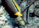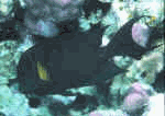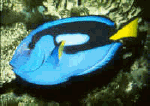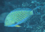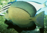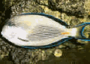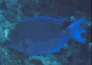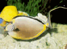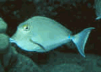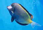 2) As for size, smaller species will usually realize only six to eight inches in total length in captivity while the largest ones may attain two feet or more. Under ideal conditions, the "big" Acanthurids attain larger proportions more quickly, growing a handful of inches a year. As size is considered during the purchase of these fishes, buying any Tang under three inches in length is not endorsed. In turn, larger specimens or adults will generally acclimate with more difficulty. 3) Color should be intense and uniform. True, when an individual is stressed or "out of phase" from being in the dark, they will naturally be off-color; however, there should be no reddening, erosion, or blotchy discontinuities in healthy specimens. 4) Behavior, or mannerisms - the way a fish handles itself in a dealer's system - is also telling. Tangs that have been captured, transported, acclimated and housed properly are outgoing and curious about their environment. Avoid hiding, sedentary and "spaced out" individuals having private parties in dark corners. Is the fish active, curious, swimming about, "sampling" it's environment? Or is it sort of spaced out, drifting, unaware of what's going on around it? Trained observation will discern the ideal selection from the one that should be left behind. 5) Time in captivity: How long has the supplier had the Surgeon? Acanthurids are subject to extensive alimentary faunas (critters living in their stomachs). These populations of micro-organisms appear to be benign to at least tolerably non-pathogenic in the wild. There may be uncertainty that this is the case in captivity. Allowing some settling time of a week or two in the dealer's for "hardening" with or sans deposit is warranted and credible businesses should always oblige the reef-keeper in such matters. In the case of the Surgeonfishes, there is one other additional vital factor concerning selection: 6) Buy local and act global. Can you stand one more gross generalization? Good, well here's a beauty…buy American. No, we really are serious in this case, and not for any patriotic inclinations. For various reasons, the same species collected in Hawaii, Guam, among other U.S. locales are by and large in better condition than elsewhere. Chalk it up cumulatively to regulation, greed for the almighty buck by providing a better product, regular utilities, and who knows what, but the fish are simply better. Location / Environment Surgeonfishes, as a family, are circumtropical and entirely marine, mostly pelagic reef fishes, though some are oceanic. They are prominent species in shallows to a few hundred feet on rocky and coral reefs worldwide. Most are found in the Western Pacific, with only nine species in the Atlantic and four in the Eastern Pacific. When considering habitat, the larger open-ocean bound species like Naso Tangs require very large amounts of tank space to be genuinely happy. Even Yellow and Yellow-tail Blue Tangs can only get along on a ten gallon allocation at minimum when they are small. In order to be truly "conscientious" reef aquarists, shouldn't we ensure the "species size" vs. "space requirements" ratios for our charges? An important consideration concerning the chemical, physical and social environment of these fishes is to keep these components and factors optimized and constant! Numerous authors cite the loss of livestock by moving or changing conditions. As an example, I'd like to offer my inclusion of an "environmental disease" of Achilles tangs - Many fish-only systems have their specific gravities manipulated to be lower than the ocean for valid reasons; to save money, control/prevent epizootics, and increase gas solubility, for instance. Acanthurus achilles does not appreciate it. Keep their salinity near that of the ocean, and homeostatic. Likewise pH should be buffered between 8.0 and 8.4, and temperature for all but the Caribbean species should remain in the upper seventies to low eighties degrees Fahrenheit. In addition, keep organic levels low to non-existent through vigorous filtration and skimming, under-crowding, and frequent partial water changes. However, many, if not most, Surgeons are openly detritivorous, picking up important biological and mineral material from scrounging around in rock and sediment. Therefore, it is important to not be absolutely meticulous in such maintenance; however, well-established reef settings with lots of live rock is the most conducive setting for all Tangs. One absolute requirement of the family is to maintain oxygen levels that are close to saturation. Low gas solubility is immediately evident in the loss of color and behavior of Surgeons. They will pant and lay on the bottom with rapid, to slower, to no gill movements. Behavior / Characteristics / Compatibility Territoriality can be a very big problem regarding 1) relative sizes, 2) relationships of species one to another, 3) size of the system, 4) number of fish and other livestock in the system, 5) order of introduction to the system, 6) and, individual personalities. For practical purposes, one Tang to a tank is a safe bet. Very rarely do the more disc shaped species such as Yellows, Convicts, or Browns mix well in a small system. The larger species in the genus Acanthurus should be designated as the dominant fish in the system. Except for foods and feeding concerns, crowding Surgeons by the species (or sometimes mixed) is okay for the schooling types available. Indeed, a small schooling group in a very large system (hundreds of gallons) makes for a spectacular showing. However, take note: even the species only encountered in schools in the wild, such as Convicts, Nasos, and Yellows fare well singly. There are exceptions to the easy-going behavior, both as individuals and species. Some individual Oriental Surgeons have been known to be particularly vicious towards subsequently introduced species and their own kind, so be aware that there are some general and specific exceptions. As for thei