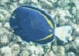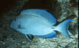Acanthurus bahianus (Castelnau 1855), the Ocean Surgeon; ranging widely over the western Atlantic coast. It's a shame this hardy fish isn't more often available in the trade. It has a subdued, yet impressive beauty. Although not superbly-gorgeous, it is one of the least aggressive Acanthurus, and the readiest feeder on aquarium fare. Acanthurus coeruleus (Bloch & Schneider 1801), the Atlantic Blue Tang; though not as dazzlingly beautiful as the other two "Blue Tangs" - Paracanthurus hepatus and Acanthurus leucosternon - this Caribbean surgeon makes a fine aquarium addition. One of a handful of Acanthurus that are overall yellow as juveniles, the Atlantic Blue Tang stays small enough for modest sized aquariums.