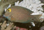 Acanthurus (glaucopareius) nigricans (Linnaeus 1758), the Powder Brown, Cat, or Gold-Rimmed Surgeon. The corrected scientific name of this species is A. nigricans (per Randall, 1988); a revision which is no doubt as unpopular to some as is labeling the species "bad". The very similar A. japonicus is a far better aquarium fish. A. nigricans rarely lives for more than a few weeks in captivity.