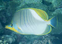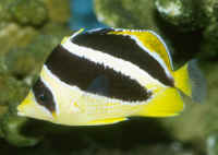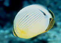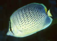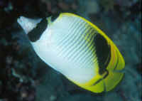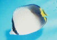 This last category are impossible aquarium species, most specimens refuse all food in captivity. Most are, regrettably, commonly imported and offered for sale. Size: Butterflyfishes offered from the Indian Ocean are typically of medium to large proportions, 5-9 inches overall length. You will want and need to do more research than what is offered here to determine space requirements for these fishes. Some grow several inches to a foot in length; that's a big butterfly. A good rule of thumb is to purchase individuals no less than a third, nor greater than half their maximum size. Overall, three to five inch individuals adapt best to aquarium conditions. Environmental: Conditions Habitat Maldivian Butterflyfishes need large (fifty plus gallon) systems with oversized filtration and circulation. A good rule of thumb is to provide each specimen with at least twenty gallons of space. Chemical/Physical A few pertinent notes here regarding water quality and Butterflyfishes Systems need to be fully established, aged if you will, for a good six months to optimize your chances of success with these animals. Similarly seawater should be saltier than what many folks keep their specific gravity at (artificially low (1.018-1.023) to increase carrying capacity, lower the incidence of disease, save money on salt mix)... don't do it with these fishes! A good constant spg reading is NSW (Near natural Sea Water), 1.025. Behavior: Territoriality Most species (with the exception of the two Heniochus mentioned) are best kept as individuals unless the system is huge or the specimens are observed associating as pairs at the dealers. Generally these fishes are only aggressive towards members of their own, similar appearing, or like-resource-using species. Introduction/Acclimation Once again, all Butterflyfishes are best placed in aged (months) systems, initially with subdued lighting. Keep an eye out that newcomers are not being bullied. Predator/Prey Relations Most everything leaves Butterflyfishes alone unless they are large enough to swallow them in one go. Feeding/Foods/Nutrition: Types, Frequency, Amount, Wastes The species listed as "good" are ready eaters of all forms of prepared and frozen aquatic foods. New specimens may have to be trained onto non-living items by first feeding live (e.g. brine shrimp, worms). Disease: Infectious, Parasitic, Nutritional, Genetic, Social All Butterflyfishes are quite susceptible to those twin scourges of the reef, Cryptocaryon and Amyloodinium. Routine dipping (freshwater with or without, copper, formaldehyde) and quarantine are encouraged over copper treatments. Butterflyfishes are sometimes sensitive to chemical therapeutics, therefore the emphasis on dips/baths and quarantine. Close: Some very good fishes come from the Maldives, and many more could, even though their geographic distribution may extend to elsewhere. With study, careful collection, the possibility of low-cost air-freight from the area, the hobby should look forward to a future of more livestock from the Maldives at ever-improving prices. Do yourself and the environment a favor and investigate the needs of Butterflyfishes that you intend to keep. As you can see, there is a huge range of historical survivability in this family. Most specimens are lost for a lack of providing a suitable environment, proper husbandry, and initial selection of appropriate species. Bibliography/Further Reading: