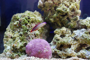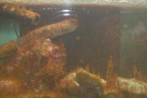 Cyanobacteria? Reading? -- 9/24/07 Hello WWM, <Geri in MA> I believe I have Cyanobacteria in my 55 gallon marine tank <I assure you, it is most everywhere> and I have tried everything to get rid of it. I vacuumed it off the substrate, did a partial replacement of substrate, cleaned the filters, sump, skimmer, glass and ornaments, and dipped the live rock in conditioned water using a toothbrush to scrape it off. <Uhh, what about addressing root causes?> Just when it appears to be completely gone, it starts creeping back. It appears on the substrate first as a coppery red dusting and then starts to cover everything in the tank and filters. I am at my wits end. Do you recommend using a bacteriostatic to stop it from multiplying? <I do not> I have fish, snails, crabs, shrimp and live rock. Can you recommend anything else to do to kill this stuff? <All sorts... competition, predation, nutrient deprivation...> What is causing it? <Mmm, life... and propitious circumstances that favor it over other life forms> I also have green slimy stuff that looks like cyano too but the hermit crabs eat at it every night and keep it in check. Thank you for any advice you can give me. Geri in Newton, MA <Read here: http://www.wetwebmedia.com/bluegralgae.htm and the linked files above, where you lead yourself... Bob Fenner> Re: Yellow Watchman Goby... Now BGA control 9/13/07 Thanks a lot for the reassurance. It is always hard when you are a beginner aquarist and have low confidence. I have a had an Octopus bimaculoides with some damsels in the past. I have never lost a fish yet (keep fingers crossed) except the octo which seemed to live his full life with me. Your website is a real inspiration and I thank you for your support. Paul P.S. I have a wicked Cyanobacteria problem for months now, PH 8.1, nitrates less than 5 mg/l, Hardness 2.5meq/l, temp 75F. Berlin airlift skimmer producing a cup every 3 days. I keep a log and do monthly 5% water changes, <More frequent, higher percentage> my fish load is quite light I think in comparison to most tanks, four small fish in 75 gallons with 40 pounds of live rock and fluidized bed filter, <This may be a large part of the problem> return pump is a QuietOne 2200 with a 4 foot head (the return is quite vigorous) , I have two additional pumps in the tank to reduce dead spots, 3 20W compact fluorescent actinics from Coralife. I am really stumped, each fish gets five grains of food twice per day, I use Sera. I then make sure the shrimps and serpent get a few grains. The shrimps make sure NOTHING is left uneaten, along with the hermits. Any recommendations? I will do whatever you say! <Please read... http://www.wetwebmedia.com/cyanocontrolfaqs.htm and the linked files above. BobF>