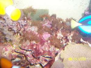 Mysterious Coral Bleaching, Not Such A Mystery (Antibiotics Administered To The Display System) -- 08/08/07 Dear WWM Crew, <<Hello Bill>> Please lend me your thoughts. <<Sure thing>> Recently (within the past week) I noticed two Montipora corals in my tank that have been acclimated and growing well begin to bleach. Within the past two days a few small Pocillopora and Acropora began to bleach as well and polyps hid. <<Mmm, an environmental issue of some sort>> I've checked the tank parameters - everything seems rather on par -- 75 gallon tank -Alkalinity - 4.2 (may be a bit high?) <<Considering you Calcium is over 400...yes, a bit>> -Calcium - 420 -Nitrate - 0 -Temp - 74 - 76 night and day <<Probably fine but a little on the cool side in my opinion>> -SG- 1.024 <<Better than many I've seen but bumping to NSW levels (1.025/1.026) is best>> -Lighting - 2 * 250 10K, 4 * 96 actinic. All the corals have loved the light to this point. <<Unless the bulbs are 'very' old this is likely not the issue>> I think my problem may be one of two things, or a combo of both. I used a cycle of "Chemi Clean" Cyanobacteria remover which threw my protein skimmer way out of cycle. <<Ugh! It has done much more harm than that I fear...you have likely wiped out much of your biological filtration. You didn't list an Ammonia reading but you need to check this right away...as well as preparing/performing large water changes and adding chemical filtration (Carbon/Poly-Filter/Chemi-Pure) to try to keep the buildup of nitrogenous compounds under control until bacteria has a chance to repopulate>> It is creating massive amounts of micro-bubbles so I haven't been able to run it properly. <<Possibly overcome by the increased organics load...perhaps you can adjust it 'down' a bit>> I am doing a third partial water change today (in the last week) to try to remove excess chemicals so I can get my skimmer running normally (not overflowing the collection cup constantly). <<The water changes probably explain why your Nitrate reading was zero. Do try to get the skimmer back in service...perhaps throttling it back a bit to slow down the overfilling of the skimmer cup>> There is also one leather coral in the tank, could the lack of chemical filtration for the past two weeks, or that in conjunction with the leather emitting toxins be killing these previously healthy corals? <<Is definitely a contributor...at the very least is exacerbating the situation. Get some chemical filtration going!>> Any advice? <<Yes...don't administer antibiotics to your display system...and start reading here: http://www.wetwebmedia.com/bluegralgae.htm>> Thanks! Bill <<Regards, EricR>> Re: Mysterious Coral Bleaching, Not Such A Mystery (Antibiotics Administered To The Display System) - 08/10/07 Eric, <<Bill>> Thank you for the thoughts and advice. <<You're quite welcome>> I will NEVER use any Cyano "solution" again. <<Are surely trouble...>> The day before I received your email I placed carbon and Chemi-pure in my sump. <<Excellent! Though do consider a purposeful reactor/canister filter for such to achieve maximum effect>> Yesterday the skimmer began working again (it wasn't working at the lowest flow setting previously) for the first time after another partial water change and two days of the carbon/Chemi-pure in the sump. <<Mmm...a good sign>> Question - now that the skimmer is running how long should I leave the carbon/Chemi-pure in the sump for additional filtration as I do not want to remove trace elements for too long? <<I prefer to 'always' have some chemical filtrant in my system (I employ two reactors with cut-up Poly-Filter on my 375). I feel the benefits far outweigh any small loss of trace elements...and the latter is of very small/no concern really with regular water changes. In fact, there have been writings on the possible buildup of trace elements to toxic levels in our 'enclosed' systems as many of these elements can enter our tanks through different avenues, not the least of which is the foods we feed>> Thanks Again, Bill <<Always happy to help. Eric Russell>> Winning the Cyano War 8/8/07 Hello WW Crew, and 'thanks' for your input on this one. <Welcome> I am currently waging war on Cyanobacteria, of which I have suffered some severe plagues in the past but I believe that I am now winning this war. Over the past week, I have witnessed an occurrence which I have not seen before to such a degree. I'll get to it in a minute, but first, some specifics: The tank is a 46 gal. bow; Emperor 400 running for circulation/chemical media/filter pads; CPR Bak-Pak; ~ 55 lbs. of live rock; ~ 2' sugar sand bed; <Would be better thinner or deeper...> powerheads = water turnover of about 20x/hr. The system has been running for 7 years. The livestock includes a smaller Ones-spot Rabbitfish (3.5' -- to be moved eventually), a Tomato Clown, an Azure Damsel, an Emerald Crab, 3 Pacific Nassarius snails, and 3 giant Tongan snails (these are a delight, by the way, rising out of the sand rapidly when they detect food has been added to the tank). In a diligent effort to reduce the cyano I have done the following: changing activated carbon every two weeks; added Chemi-Pure Elite two weeks ago and rinse it weekly; added 1 pouch of Algone 3 days ago to further help reduce nitrates from 60 ppm; cleaning skimmer and filter monthly; blow off the LR daily with a baster or powerhead; reduced feeding (especially after removing a killer Yellow Dottyback this past weekend); I vacuum LR while performing a 10% water change weekly with RO/DI water, utilizing Red Sea's Coral Pro salt. I offer no additives other than 1 capful of Purple Up daily. SG = 1.025 to 1.026 consistently; ammonia = 0; Nitrite = 0; Nitrates high at 40-50 ppm; <... too high> Phosphates not detectable; (have not checked for Silicates); Calcium ~ 400; temp is 79-80° F. during the daytime. I feed moderately the following: 6 days a week various frozen foods including Mysis, algae mixtures, crab, shrimp, plankton, 