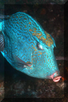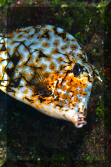 the Scrawled Cowfish. Note the two horns above eyes; missing in