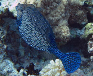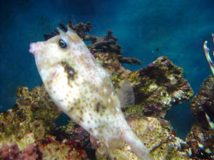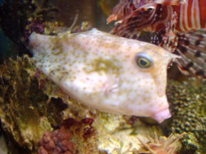 Hovercraft Fish I'm looking for information about my hovercraft fish. <Never heard of a fish called that. Is it a pufferfish? I need to know what kind. See if your fish looks like any of these & get back to me: http://home.earthlink.net/~snebluemoon/Picture%20Gallery.html> Please could you send me any information you have as I can't find any. Thank you. <Pufferpunk> Re: Hovercraft Fish I couldn't find my fish on the link you sent me. <That's because that link if for FW & BW puffers. Your fish is SW. WWM has loads of info on them if you search for it. See: http://www.wetwebmedia.com/boxfishes.htm> This is the Hovercraft fish I have. I found this picture but I can't find any information. It may be called a Hovercraft Boxfish, the stockist had it listed as just "Hovercraft Fish" <I actually have a tattoo of your fish!> Again, thank you for your time, I'd appreciate further help. <You're welcome & good luck w/your very cool fish--PP> Boxfish ID Hi guys- There is boxfish at LFS I have never seen before. Last night I spent an hour searching every site and index I could find, can't find it. It is a basic yellow boxfish but the spots look like three seed peanuts, two black ovals on the outside and one bright white inside. Hard to explain but very dramatic looking. Any links to this fish would be appreciated, I want to know the species, max size and any info on keeping in captivity. TIA <Sounds like an intermediate/developmental stage of an Ostracion cubicus to me. Please see here on Fishbase: http://www.fishbase.org/Summary/SpeciesSummary.cfm?ID=6555&genusname=Ostracion&speciesname=cubicus Click on the one image at top right... and look on the next page shown toward the bottom right. Bob Fenner> Aging yellow boxfish question (1/5/04) Hi Bob, <Hi! Ananda here tonight....> I've just purchased your Conscientious Marine Aquarist book and am looking into getting a yellow boxfish. <A difficult fish to start with if you're a beginner....> I noticed the image of the adult being much different than that of the juvenile I've visited in the store. Do the adults always fade in color and age as these drastic pictures indicate? <I believe the amount of fading varies somewhat from fish to fish.> After how many years of life does this usually occur? Any information or resources would be much appreciated... especially pictures. <Your best bet is to ask the folks on the "Cowfish, Puffers, & More" Yahoo group: http://groups.yahoo.com/group/CowfishPuffers_andMore/ They have a number of people with cowfish.> Thanks so much, Gina <You're quite welcome. --Ananda> Cowfish Size Questions Hi thanks for the quick reply about the cow fish I was wondering how big it would grow as they have a really small one (about 1 inch) in the LFS but also a larger one (4 inches) just wanna know if it will grow huge or not. thanks a lot Andy <Some cowfish species get quite large. Most of the ones available for aquarium use and their size data we have posted here: http://www.wetwebmedia.com/boxfishes.htm Bob Fenner> Cowfish/Boxfish Let me first say, this is the most impressive website I have ever seen. <Very kind of you.> I have learned so much from reading, unfortunately, I managed to kill most of my fish before finding your site. Thankfully, I am learning. My question, I saw some cowfish at my LFS, some were green and some orange. I thought they were really cute. I was reading up on them, on your website of course, and I keep seeing the terms boxfish and cowfish. <Take a look here. http://www.wetwebmedia.com/boxfishes.htm. Boxfish and cowfish are both in the same family.> I'm not really sure of the difference in the two. Do both basically release the toxins that will kill the fish in my tank if under stress? <They both have the same toxins.> I've had enough deaths over the past year and finally have a happy community. My tank is a 55G, with a firefish, flame angel, royal Gramma, and a Singapore angel. <The biggest problem you are going to have is that the fish are going to outgrow your 55 tank. You would be best perhaps in passing on both of them.> Cowfish of a different color, not Oz Hi, I recently bought a whitish/yellow boxfish with black spots on it and I have noticed that it is starting to turn dark gray. Should I be worried? Thanks, Derek >> This is probably an Ostracion cubicus, and they do grow into a gray phase. Take a look at a large marine fish reference work, and you'll understand if what you're looking at is "natural". Bob Fenner Ostracion cubicus Hey Bob I just inherited a couple of fish with a used tank I purchased. One is a cute, tiny little boxfish. I think he might be a Ostracion cubicus but am not sure. He does not quite match the photos of Ostracion cubicus on the Net or in your book- (the Conscientious Marine Aquarist) however he is yellow with little black spots and is about the size of a single dice (ya' know, the thing you shoot craps with). The major difference between my fish and the photos of Ostracion Cubicus I've found is: my little guy has an almost invisible, nonexistent tail. If you peer super close you can see a tiny, clear fin moving madly back and forth. In the photos of Ostracion Cubicus they all seem to have a noticeable tail the same yellow/black spotted color as the body. My question is: could this just be a very young Ostracion Cubicus that has yet to grow a bigger tail or is there another boxfish species that is also yellow with black spots? The guy I bought the aquarium and fish from called it a Boston bean which I believe is a somewhat generic name for baby boxfish and puffer species. Thanks, Randy >> Hmm, could be a juvenile Ostracion cubicus... of possibly Lactophrys bicaudalis (the "official" "Boston Bean"), caught out of the Atlantic... Take a look at any fish reference work detailing the Caribbean... Is this your fish? When small they're orange to yellow with smaller dark dots than the "Cubicus, aka Yellow Boxfish"... Bob Fenner Cowfish I am very new to the salt water wonderland. My very f