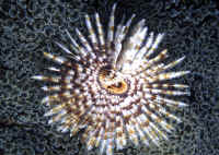 hopefully this does help. Have a good night, PF> Creature Feature... 2/20/03 Hello everyone! I have a quick question on some invertebrate that I am concerned about I thought at first that I was dealing with a Nudibranch but i believe this is not the case. These creatures are the size, shape (oval) and color of a piece of rice, seem to be non motile, attach to the acrylic by one end and have tentacles at the other end. I originally saw them on the hang on the back wet dry filter but today I noted several on a power head. I have not seen any on the rock work or corals. I have checked the FAQ but have not read or seen anything similar. They are not Aiptasia. Any help would be appreciated. I am not able to get clear pic. Thanks, Jim /Long Island <Jim, I talked with Ananda about this one and we haven't a clue what this is. Please send us a photo of this creature. Even if the photo is not clear it's better than nothing! Be in touch.. Phil> Worm ID Hi, I have a question about some worms that I have in my tank. They are pink at the head with the rest a purple or black color. they have bristle that look like hair at every segment. These came out of some new rock I got. I thought there were only a couple but when I fed my anemones Mysis shrimp a whole bunch came out from very small....the size of a pin to the size of a Q-tip. I would like to know what these are and if they will eat the anemones. one big one is directly behind my long tentacle and I am worried he might get eaten. I have searched the sight for days, but no definite pics or the like. can you help? Thanks <sounds like bristle worms, I would not be too concerned, they make good detritivores. If possible, feel free to send us a picture. Best Regards, Gage> Big Pink Worm - Predatory Polychaete? 2/16/03 Hi,.....I have a big pink worm in my saltwater tank that was donated to us. We have a lot of live rock, and I was told that these worms come in with the rock. <yes... likely a bristleworm (type of Errantiate polychaete). Rather common and harmless unless huge (over 4"). Also commonly mistaken for the real bad guys- Fireworms> The problem is, several small fish that we've added to the tank have been disappearing after a day or two. Could this "worm" be the culprit? <Possible indeed. Do use the worm names above to do keyword searches of our archives and of the 'Net abroad to see pictures and compare> This worm seems to eat algae, so I'm not sure he's the problem. <Strange?! not at all common for them to be algae eaters... have you seen this behavior? May not be a bristleworm or fireworm at all. Do browse the archives of pictures... wetwebmedia.com and/or send us a picture> Thanks, Cindy <best regards, Anthony> Worms preying on Snails? - 2/15/03 Dear Crew, I have a number of 1 to 2 inch red bristle worms in my refugium for "diversity" and they do clean up food and stuff that comes down from the show tank overflow. <agreed... the bristly polychaetes are excellent for this> Will they capture and eat snails and conchs? Lettuce nudibranchs? Howard in Wisconsin <not likely... only the true Caribbean Fireworm is such an adapted predator. The tiny common bristleworms look grossly similar, but are smaller and not inclined to preying on the healthy... they just scavenge the dead and dying. Best regards, Anthony> Bristleworms Any idea how long a large bristleworm will last when you remove him and the rock he lives in from water. I pulled the rock one was living in last night. He came out when the rock was out of the water. I had about half of him by forceps but knew I would have broken him in half if I had continued to pull. At the time I thought maybe half of him could regenerate. After doing more research I realized that this is not the case. Anyway I was wondering if it takes days to kill a bristleworm out of water. <Likely to be long enough that the beneficial stuff on the rock would die as well. Before taking this step, try putting the rock into water (maybe change water?) and elevate it off the floor of the container with eggcrate, pvc, etc. Then bait the bottom. The hope is to draw the worm out to feed but then the rock is high enough that the worm can't find its way home> If I wouldn't think so but who knows. I have not had much luck trapping bristleworms. I watched the same one described above go all the way into a commercial trap. The only problem was that he had several inches out of the trap as well and came right back out. The trap looked like a good design until I saw it in action. I have also tried the bait inside of panty hose trick with no luck. I did see several around the outside of the pantyhose in the middle of the night but they did not stick to the pantyhose. <Another method to try is to use a long tube, like a pipette and bait one end. You can imaging the rest, good luck Don> Bristleworm spawning- Chemical cues Okay, I have been in the reef hobby for a little over a year and I have several bristleworms in my 55 gallon tank. <no biggie... very good for sand bed health and not a problem if you control nutrients in the tank> I have had these since I got the rock. Well, today, my girlfriend was using a turkey baster to blast some detritus from the rocks and she saw a bristle worm. Who knows what was going through her head, but she tried to suck it up in the baster. Well it broke in half and released some salmon egg colored (if any of you has been trout fishing you know the color, a little brighter than melon) stringy substance. <heehee... hahaha... gametes likely> Within 5 minutes at least 20 other bristle worms came out of the rocks, faster than I have ever seen and started "shooting" this same stringy substance out of their back end. <yep... the first one have the chemical cue for all to get their group polychaete groove on> I have never seen this before but after freaking out about tank pollution, I settled down and thought maybe this is how they spawn?? <correct my friend> Any help will be greatly appreciated. <no worries... ski