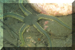 Crevice Brittlestar. Thin arms, small spines... Light color banding.