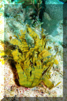 Structure: As stated above algae have not true roots, leaves or flowers. The whole algal body is termed a thallus. The portion that attaches the thallus to the substrate is the holdfast; the erect stem-like stalk is called the stipe (like stripe without the "r"). Almost all brown algae are attached; a notable exception being the classic genus Sargassum which makes up the bulk of the floating masses of the Sargasso Sea. Brown algae are macroscopic for the most part with no unicellular or colonial forms. Though phaeophytes contain the requisite photosynthetic pigments, chlorophyll a & c, they are characteristically colored brown due to the accessory carotenoid pigment fucoxanthin. Reproduction: Let me try out another way of making known to you the concept of "alternation of generations"; it's kind of a hard concept to grasp. Imagine a given species of algae. Instead of only two types of individuals, one male and one female, as with you and I, the algae you encounter can be one of three possibilities, male, female or a sporophyte. This is a little tricky... the male and female individuals are structurally very different from the sporophyte. Generally they are very small, possibly microscopic; and they are haploid organisms, that is, their cells are composed of one-half the full complement (diploid) of chromosomes. The sporophyte arises from the flagellated spores of the gametophyte getting together under fortuitous circumstances and develops into the larger, sometimes huge specimens that most of us recognize as seaweeds. One more time. Algae are spore reproducers lacking the familiar reproductive structures of flowering plants. In green and brown algae these spores are usually motile, flagellated unicells produced in sporangia (compare with ferns). Spores produced by the sporophyte generation of algae give rise to the gametophyte generation which reproduce via motile flagellated gametes. Generalized life history of a brown algae. How to Get Them: Collection: Brown algae are abundant along both coasts of the U.S. in cooler waters. They are present in smaller sizes and numbers, though not as conspicuous in warmer areas. Going hunting for your own algae generally requires permits, otherwise known as licenses, okay another tax. Check with your local, state "fish and game agency" regarding. A word about the drift, as in "do you get my". Storms bring in a great deal of algae et al. material to the beach; mostly dead and dying. Avoid it. Low tides and "minus" tides are productive times for collecting specimens. The same guidelines apply for algae as for invertebrates and fishes. Be discerning about what and how much you take! Pick only a few, small healthy individuals and pack them loosely and carefully for the trip back. I suggest double-bagging with enough water to cover them, and placing the bags in "fish" boxes or sturdy buckets. For most varieties of attached algae, chipping a small piece of the substrate which it is attached to is advised. Check with your local laws and Wear safety glasses and gloves when smacking rocks with hand tools. A few notes concerning processes to go through before introducing "wild" algae. These organisms must be handled the same way as fishes and invertebrates; i.e. with a quarantine, or at least dip procedure to remove pollution and undesirable critters. Beyond that I suggest you acclimate them through a water interchange procedure. Oh, and a word regarding using collected algae as food. This is a great idea as a blended food additive or supplement, but do rinse and freeze the material first for the same reasons as above. Purchase: Is the best, and for those who live away from the sea, the only way to acquire macro-algae. As compared with collecting your own, what do you get? A guaranteed, live specimen with a cultured pedigree no less; no chemical or biological contamination. In total a supremely pre-adapted aquarium captive. Sources for buying include your local shops and mail order. The specialty marine outlets can order wild and cultured algae year round. Give them the following if they need a supplier: Aqualife Research Corp., 700 S.W. 34th St. Ft. Lauderdale, FL mailing address. Or their facility @ 33315 Walker's Cay, Abaco, Bahamas, 305-359-1409. Godfrey Waugh and staff also produce large quantities of tank bred and reared Clownfishes and neon gobies. Vitality: Is it healthy, dying or what? If the algae is turning white, falling apart, or yielding an odd smell to your water, it's time to give it the old heave ho. Keeping: Maintaining a tank with macro-algae is like other types of marine systems. Some arrangements are easier/harder to keep going than others. Obtaining good, healthy individuals and providing a suitable habitat is key to any system's success. Research the algae you want to keep. Most require cold to temperate water, rigorous circulation. Adequate lighting and nutrient availability are simpler matters. Considering their original source, the habitat requirements of brown algae are easy to understand. They're for the most part relatively stable physically and chemically, due to the size of the system, the ocean shore, and the circulation afforded there. A stable high density (1.023-1.025), maintaining a pH in the low to mid eights is critical. A pinch of sodium carbonate or bicarbonate (Arm & Hammer) and frequent partial water change (20% per month) should do. As regards lighting; different species have more/less need for quantity, quality of light. Most green and red species require far more than brown algae. Mixed, broad spectral fluorescent sources are recommended for 16-18 hours per day. Regularity is important, so I would incorporate an automated timer system. Too much light is practically impossible. Some stated rules of thumb are @ 3 watts per gallon; if you have a meter @ 16,000 lux at the algae depth. Temperature ranging too high, too long is often the cause of loss of these algae. It is strongly recommended that you acquire a chiller wi