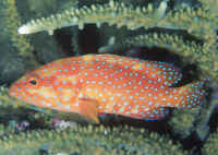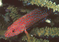 2/7/14 Environment Physical: As with computer hard drive space, cash reserves in the bank, bigger is better when it comes to housing true basses (family Serranidae) including the genus Cephalopholis. I wouldn't place even a small specimen in less than a sixty gallon tank. To encourage outgoing behavior and the animal's overall happiness a system of twice that volume is called for. More than one or adding a similar species? Double it again. Chemical: This is a notably undemanding species that does best under standard NSW (Near SeaWater) conditions of tropical sea temperature (low seventies to mid eighties), specific gravity, composition. For such big eaters, as you might imagine, enhanced circulation, aeration and overall filtration are a plus. Behavior Territoriality: Tankmates As with many true basses, this Hind does not like to share its hiding spaces or feeding niche with other fishes. "Yawning" behavior, squaring off side by side with tankmates are signs of aggression that should not be ignored (someone should be moved). Large enough (hundreds of gallons) systems, plenty of cover/caves, utilizing differently colored/marked though related species greatly diminish the likelihood of negative interactions. See below re "foods/feeding" regarding the propensity of this fish to eat mobile tankmates. Animals of smaller than mouth diameter (including cleaner organisms) are often ingested as food. Reproduction: Not known in captivity. Digging Behavior: This species can be a prodigious excavator, moving sand, good-sized rubble about with its mouth. The usual cautions here to be careful about rock and other heavy decor placement. Best "wiggled" into place, touching the "bottom" of the tank, filter or plenum plates, and/or rock below. Foods/Feeding/Nutrition: Though this Hind feeds principally on fishes and to a lesser extent crustaceans in the wild, it is an exemplary omnivore in captivity, readily feeding on any/all foods of size, bulk that will fit its mouth. Any small-enough fishes and crustacean livestock are potential game. As with most predaceous captives, it is best not to over or to frequently feed your Hind. Twice, thrice weekly is sufficient. Disease: Prevention, Control: Should your system succumb to an infectious or parasitic disease, your Cephalopholis will be amongst the last to show signs or perish from same. This fish can catch the usual reef scourges (ich, velvet), but is very rarely a carrier. Like most basses they're easily treated for such problems with common medications and environmental manipulation (e.g. hyposalinity). Conclusion: What more could a pet-fish hobbyist want in the way of a larger "show" specimen for their larger marine system? The Coral Hind, aka Miniata Grouper, is strikingly beautiful, readily available, intelligent, hardy, adaptable to captive conditions. An ideal fish addition if you have larger than mouth-size fish and crustacean tankmates.