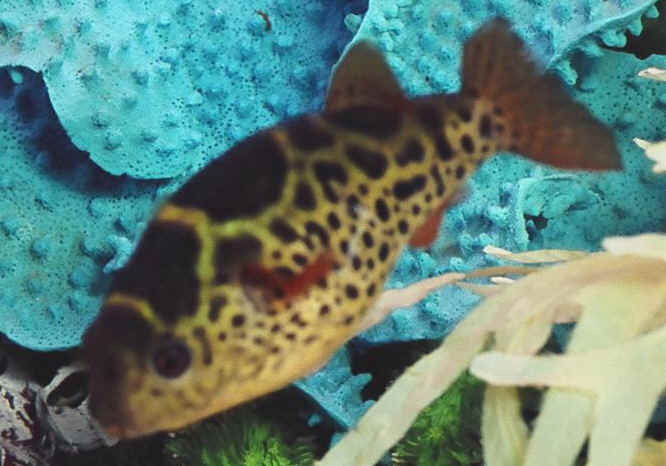 Puffer tank and check often that it is closed. They are known jumpers! Do not try to make your Puffer puff! Puffing is a defense mechanism brought on by fear and stress. It is not good for your Puffer to inflate itself. Never take your Puffer out of the water! It can puff with air and may never recover. I have had some success in “burping” a Puffer by holding it vertically (head up) under water and gently shaking it by its tail until the air is released. A puffer with air inside cannot right itself and will die. If you ever need to catch your Puffer (even when getting it from your LFS), scoop it up with a container.