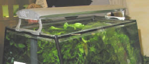 All three of these needs must be met and must be balanced for planted aquaria to thrive. The reality of Plant Success 101 is that all things need to be correct, in balance, and constant. Without that foundation, you'll eventually end up with dead plants, algae gone wild, and a spouse insisting you "take down that eyesore right now!" I'm here to help you avoid all that! In this issue of Conscientious Aquarist, we're going to look at proper lighting for plant success. In future issues, we will address substrates and food. Now, I get to pat myself on the back. I've come a long way from how I first determined the correct lighting for my tanks (if the plants died, I added another strip light; if algae got out of hand, I took off a strip light). There is soooo much confusion with "lux" and "lumens" and watts that it makes the newbie "wet-thumber" run for plastic plants! Although a few numbers will be mentioned, I promise you won't need to know Boolean algebra in order to properly light your aquarium. Let's first consider how plants use light. Photosynthesis is the process that plants use to convert light energy into biological energy in the form of sugars (Photo = light, synthesis = to make). Photosynthesis occurs in chloroplasts, which are components of the plants cells that contain chlorophyll (and/or other photosynthetic pigments). Chlorophyll uses light energy to convert water and CO2 into sugars, with oxygen as a "byproduct." These sugars are the fuel that plants use to grow. The rate of photosynthesis can be limited by the availability of CO2 and nutrients, but we will discuss those in future issues. Suffice it to say that no amount of light increase will improve plant growth as long as CO2 and nutrients are limited. One of the ways to avoid disappointment is to know the types of plants that will be kept and their lighting requirements. Not all plants are created equal when it comes to lighting! For example, dark green plants typically possess an abundance of chlorophyll and can be grown in low light tanks. Plants with light green leaves are typically less effective at photosynthesis, because they have less chlorophyll. To compensate for this, light green plants usually require brighter light than dark-leaved plants. Red-leaf plants actually reflect light rather than absorb it. They use a less effective carotenoid pigment rather than the usual chlorophyll pigment which is why they require very bright light. Sometimes, just by moving a plant to a different light intensity, it will do much better. This is important because with the wrong lighting conditions, even reportedly "easy" plants fail. I like to tell the story of my own adventure in this regard: When I first set up my heavily planted discus tank, I used a variety of plants, including Microsorium pteropus (Java fern), which I was told was an excellent beginner's plant -- easy and hardy. One retailer even told me "If you can't get Java fern to grow, Missy, then you should give up on aquarium plants". I purchased some plants and took great care to thread them to some bogwood, arranging the pieces quite nicely. Within a short period of time, all the other plants in my tank took off -- but the Java fern turned black and died. Unbeknownst to me, the lighting was too intense for the Java fern. This is a clear reason why I always say not to give up if you don't achieve immediate success! Often, just by replanting a Cryptocoryne species under the shade of another plant's leaves will make the crypt soar, whereas bringing a Swordplant species into bright light will have a profound impact on its growth rate. There are several types of lights and fixtures from which to choose. In my tanks, I use compact fluorescents for deep tanks or those that are run with CO2. I use standard fluorescent strip lights for shallow tanks and those without CO2. One note: in general, fluorescent lighting discharges the light in every direction, thus wasting a good portion of it. You can get reflectors for such lights, and this will greatly aid in redirecting the light right into the aquarium.