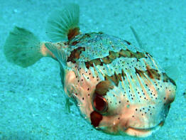 Tetraodontiform fishes are famously toothy predators that have entertained, inspired and challenged (sometimes literally) divers and aquarists for many years. This Order contains such familiar personalities as the fearsome Triggerfishes and those endearing puffers. When handling large predators like these in aquaria, special attention is required beyond typical fish hobby husbandry. Utilizing improved filtration should be expected, but keeping messy predators demands even more effort than simply up-scaling hardware. We must consider issues of adequate housing for exercise (as large species approach adulthood), long term diet and the nature of prey offered, and behavioral enrichment. The latter is an issue that few aquarists really contemplate. In tanks with small grazing fishes, the construction of a natural habitat with live rock and natural algae will satisfy the needs of most popular mini-reef species like blennies, dwarf angels, small wrasses, and the like. But large reef fishes are often highly interactive with their environment and place unique demands on a keeper and the captive habitat. They exhibit intelligent behaviors that at times seem to be matters of curiosity, if not amusement. The earliest marine hobbyists reported such behavior with pet Triggers and puffers observed to frequently pick up inanimate objects (and sometimes animate ones too!) in a deliberate process of exploring and "redecorating" their territory. You can find some hilarious anecdotes of interactions between Puffers & Triggers with airline tubing, filter components, aquarium décor and even sessile invertebrates being manipulated and carried around the aquarium. Indeed, there have also been some tragic accidents too, ending in injury or death, with incidents of particle ingestion leading to suffocation, impaction (intestinal blockage) or perforations of the intestinal tract. We've also known of deaths by the destruction of submersible electric devices like pumps (chewed upon cords) and heaters (the thermostat light draws the attention of some fishes) - all of which could have been prevented with enough caution and forethought. The provision for fishes to conduct safe nibbling and chewing activities goes beyond environmental enrichment though. Adequate tooth wear via browsing activities is quite necessary for health and the very survival of some fishes.