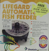 Also, fish food manufacturers go to great lengths to seal up their jars and cans to keep the food fresh. I always make it a point of making sure the lids are screwed back on tightly after each use. I even know of friends that keep their dry foods in the refrigerator to help keep the food fresh. This is a great idea if your significant other will tolerate it. I am not so lucky! Nevertheless, placing food in an automatic feeder where it is open and exposed to atmospheric air is not a great way of providing your aquatic pets with a highly nutritious diet. And finally, even with fine-tuning, an automatic feeder is non-responsive. It can not adjust to the particular needs of your fish over time, or even on that particular day. That leads to either chronically under-or-over-feeding, neither or which is good for the fish or their environment. So, if you cannot find someone competent whom you can trust to feed your fish while you are away, use an automatic feeder while you are gone. But, I would not rely on one to take care of all your fishes dietary requirements day in and day out. So, that's it for my impressions of automatic feeders! Have a great vacation! Eheim auto feeder for pellets 3/15/07 Eheim auto feeder for pellets