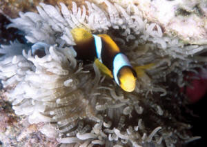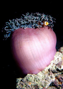 The above information is presented as a good starting point. There is no guarantee that one of the Clownfish listed will go into it’s “preferred anemone”, but in nature they are most often seen frequenting their preferred host anemone as listed above. Unfortunately, most of the anemones listed are much more difficult to keep than the clownfish associated with them. To insure the best possible chance of maintaining anemones, strong currents (preferably wave maker style), six to eight watts of lighting per gallon, addition of trace elements, and with the exception of the Carpet and Saddle Anemone which should have a minimum of a 120 gallon aquarium, all others should be maintained in no less the 55 gallon tanks. When purchasing anemones, ensure tentacles are fully inflated. Anemones with gaping mouths should not be selected. Anemones in good health, especially the larger ones will feel very sticky to the touch. Anemones should not be fed goldfish or anything not "marine" in origin. Raw crabmeat, cod, shrimp are all accepted. One weekly feeding (small portion) will suffice as anemones as corals will produce most of their own food provided proper lighting is in place. To ensure success in maintaining anemones, water conditions must be pristine. Weekly 10% water changes are a must using a salt mix reputable brand blended for reefkeeping. Anemones in the dying stage are notorious for fouling a tank and killing other inhabitants. It is strongly recommended that foam sleeves be put over the intakes of power heads, as eventually anemones will relocated and will inevitably find the intake of the power head and be killed. And as a rule, these moves generally take place while you are sleeping. Health checks should be made daily. More information can be found on the www.wetwebmedia.com site! Suggested Reading: Wilkerson, Joyce D. Clownfishes. T.F.H. Publications, 2001