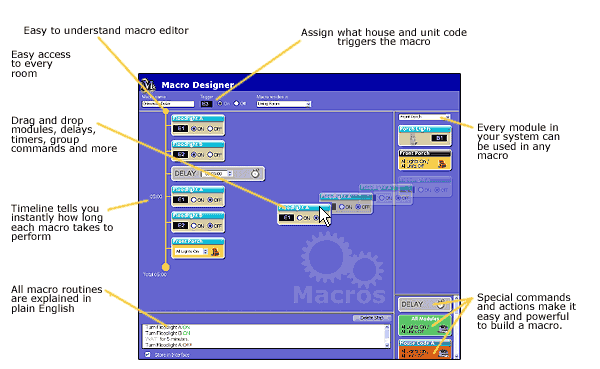 There are many different modules available for the system, including wall switches both two and three way lamps, modules for both 115V and 220V appliances and modules with motion detectors and floodlight detectors. Want to keep an eye on your tank while you’re at the office? No problem. Cameras are available to record areas of interest and transmit them via the home computer to your office or place of work.