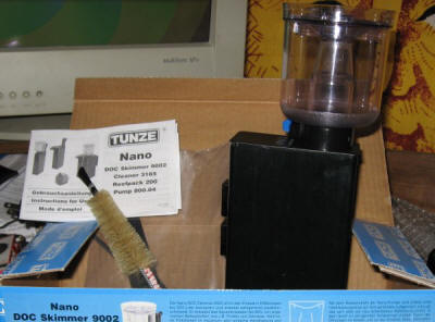 The Score- Presentation – 3/5 Sound – 5/5 Ease of Setup – 5/5 Value – 5/5 Overall Rating – 5/5 First Impressions... Let me begin this review by stating that, while the ratings above may seem misplaced when talking about a skimmer, let me tell ya': they're dead on. The manual was a little confusing to deal with, the skimmer is DEAD silent, I feel it was worth every penny, and I'm already considering one for my other tank and recommending it to others with small tanks. Ok, now that that's out of the way, on to the fun. First, a little background. I've been in the hobby for about a year now, and the 40 gallon that this skimmer is on is my 2nd saltwater tank. When I purchased the tank and stand, I got a free Marineland Emperor 400 and Red Sea Prizm Deluxe skimmer with the setup. Obviously, I wasn't going to wait until I had exactly what I wanted on the tank to start things. So goes impatience. I ran the tank for about 9 months with the Prizm, and was simply never very happy with its production. It had to be adjusted constantly, lost its siphon fairly often, and its skimmate production varied from very little, to none at all.