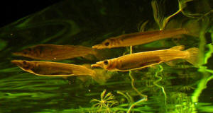 The best thing about the brackish water aquarium is the extraordinarily wide variety of fishes available. The majority of brackish water fishes belong to marine fish families. In some cases, these families are popular with marine aquarists as well, for example Pufferfish, Moray Eels, Damselfish, Snappers, Gobies, and Blennies. But in many cases they come from families that, for one reason or another, are rarely kept by marine aquarists. Good examples of these include Mudskippers, Halfbeaks, Spaghetti Eels, Waspfish, marine catfish, and various types of Flounder and Sole. Some families are more or less brackish water specialists, of which the Archerfish, Scats. and Monos are perhaps the best known and most frequently traded examples. Finally, there are families of freshwater fishes that include species adapted to brackish water, including many species of cichlid, livebearer, and killifish.
