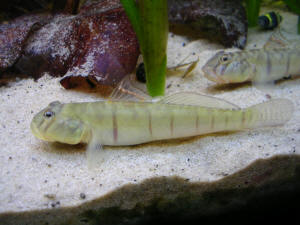 In a low salinity aquarium, the best substrate to use is plain gravel, which may be augmented with laterite or aquarium compost if good plant growth is required. Silica sand is a good alternative, but works best with fishes that will turnover the sand and keep it nice and clean, for example gobies and flatfish. A mix of plain gravel and silica sand can create a very authentic reproduction of an estuarine river bed, especially if a few broken snail shells and fragments of oyster shell are mixed in as well. The addition of a few water-worn boulders will further enhance the illusion. In higher salinity aquaria, mixing sand or gravel with crushed coral, broken seashells, and/or plain coral sand, can create an authentic substrate that will additionally raise the pH and increase the buffering capacity of the aquarium. In tanks where the SG is above 1.010, and when fishes that need a high level of hardness and pH are being kept, then a substrate consisting entirely of coral sand and/or crushed coral should be used instead. While adding things like dead coral fragments and large seashells will do no harm, it is questionable whether they are authentic additions to the brackish water aquarium. If in doubt, stick to things that naturally occur in estuaries and mangroves, such as oyster and mussel shells, small clam shells, and small, nondescript snail shells. Anything obviously marine, like spiny conch shells and giant clam shells, will shatter the illusion that what is being created is an authentic slice of a brackish water habitat. Livestock: Fishes
