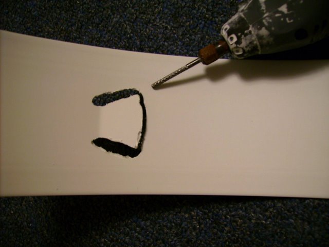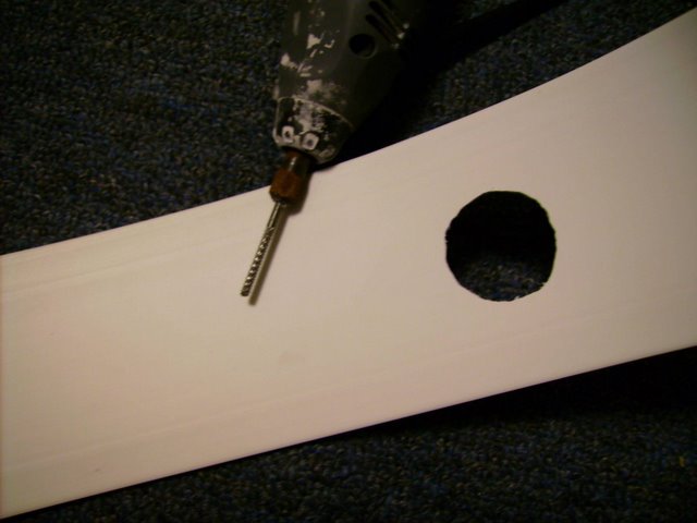 into a circular barrel. I then used a Dremel saw to carve out two rectangles (to