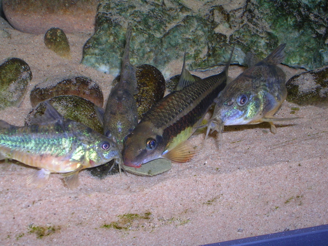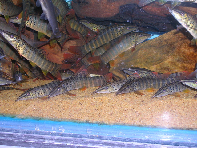 Most of the new loach species come from South and Southeast Asia, in particular Burma, Vietnam and China. With few exceptions, they come from fast-flowing streams, often in upland areas, so compared with the well established species like clown loaches and kuhli loaches, these new loaches prefer relatively cool, well-oxygenated water. Acanthocobitis botia is one of many new loaches on the market currently being exported from South and Southeast Asia Does this limit their usefulness as community fish? Not really; most of the fish that enjoy fast-flowing water also like moderate temperatures and lots of oxygen as well. So these loaches would make fine companions for things like barbs, danios, hillstream trout, Corydoras catfish and other fish that inhabit streams and shallow rivers. Taxonomy The fish we call loaches potentially come from several different families. Most come from what we might call the true loach family, the Cobitidae. Among the principal genera that yield species to the aquarium trade are Acantopsis (the horseface loaches); Botia (the South Asian botias); Chromobotia (the clown loach); Misgurnus (the weather loaches); Pangio (the kuhli loaches); Sinibotia (the subtropical Chinese loaches); Syncrossus (the tiger loaches); and Yasuhikotakia (the Mekong loaches). At this point it’s worth mentioning that loach taxonomy has been substantially revised since in the last few years, and many of the loaches that were once placed in the genus Botia have now been split off into separate genera, including Chromobotia, Sinibotia, Syncrossus and Yasuhikotakia. Balitoridae. Compared to the Cobitidae, many members of this family show particular adaptations to life in fast-flowing water, for example sucker-like pectoral and pelvic fins. Among the genera encountered in the aquarium trade are Acanthocobitis, Beaufortia, Gastromyzon, Homaloptera, Nemacheilus, Pseudogastromyzon, Schistura, Sewellia, Sinogastromyzon, Vaillantella and Yunnanilus. Some of these have been around for a while, usually sold as Hong Kong Plecos, Borneo Suckers or Butterfly Loaches, including species of Beaufortia, Gastromyzon, Pseudogastromyzon, Sewellia and Sinogastromyzon. Without exception, these Hong Kong Plecos come from cool, fast-flowing habitats are rarely adapt well to the average community tank. In fact all the Balitoridae do best in clean aquaria with plenty of water current and lots of oxygen. Garra cambodgiensis is more closely related to the minnows and carps than the true loaches, despite often being sold as a loach. The third family from which loaches are derived is the Cyprinidae or carp family. Most members of this group are midwater fish, notably things like minnows and barbs, but the genus Garra in particular includes species that have become distinctly loach-like in appearance, and often get sold as stonelapping loaches. There are numerous Garra species in the trade, including at least one species, Garra rufa, that has become famous outside fishkeeping circles as the “doctor fish” for its supposed ability to reduce the symptoms of certain skin diseases. People with psoriasis bathe in pools filled with these fish, and the fish nibble away at the dead skin. Social behaviour One issue with loaches that needs to be considered is their social behaviour. These are usually boisterous fish, and while they may form schools in the wild, under aquarium conditions individual fish can become territorial bullies. Depending on the species they are either best kept as singletons or else in fairly large groups of at least six specimens. There are exceptions though, with most species of Acanthocobitis, Garra and Pangio being reasonably to very peaceful. These are consequently among the best loaches for community tanks. The Hong Kong Plecos are completely peaceful towards their tankmates, though they are territorial and can be feisty amongst themselves. Still, being relatively small, it isn’t difficult to provide enough space for a group of Hong Kong Plecos to settle down nicely. By contrast, species of Botia, Schistura and Syncrossus tend to be much more boisterous. At feeding time they will often monopolise food, excluding more delicate fish such as Corydoras. Some of these loaches go beyond being merely boisterous and are actually quite aggressive animals, and their tankmates should be chose with care. Diet Loaches can be divided into two main types, those that feed mostly on algae, and those that feed mostly on benthic invertebrates such as worms, snails and insect larvae. In terms of feeding, all you need to do is identify the type of loach you’re keeping, and provide the right balance of algae and invertebrates in their diet. Hong Kong Plecos for example feed mostly on algae, and in the aquarium will do best if there is plenty of green algae for them to graze on. Failing that, algae wafers make a good alternative. Their diet can be supplemented with bloodworms, tubifex and so on, but it’s important not to think of these fish as scavengers. They’re not scavengers, and if you don’t put green foods out specifically for them, they’ll starve. Garra are somewhat similar to Hong Kong Plecos, but a bit more omnivorous. So alongside algae wafers, they also enjoy meaty foods, like chopped seafood and catfish pellets. Most of the remaining loaches are highly omnivorous, consuming whatever they can find. Again, they shouldn’t be treated merely as scavengers, but given a varied diet of algae wafers, cooked peas, chopped seafood, frozen bloodworms, earthworms, snails and the like, these loaches should do well. Aquarium There are a few key things to remember when keeping loaches. The first is that these are fish from fast-flowing streams, so above all else, they need clean, well-oxygenated water. Generally this means a robust filtration system. Look for a filter system that provides 8-10 times the volume of the tank in turnover per hour, and possibly more where Hong Kong Plecos and most of the other Balito